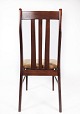 Sæt af fire spisestuestole i mahogni og polstret med lyst stof, af dansk design fremstillet af Farstrup møbler i 1960erne. Stolene er i flot brugt stand.