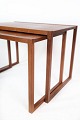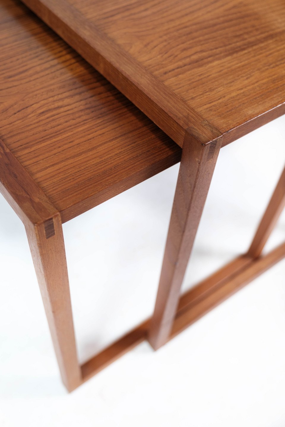 Dette indskudsbord er et eksempel på dansk design fra 1960'erne, lavet af teaktræ, der udstråler varme og elegance.