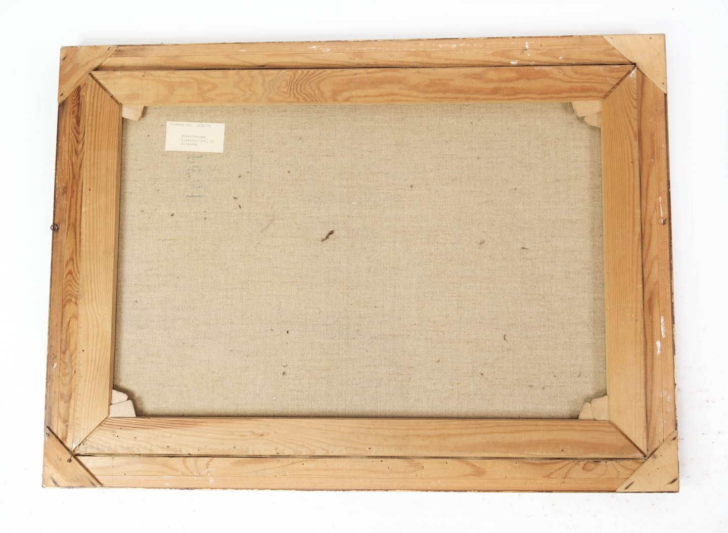 Painting on canvas with harbour motif and gilded frame, signed V.B. from the 1940s.