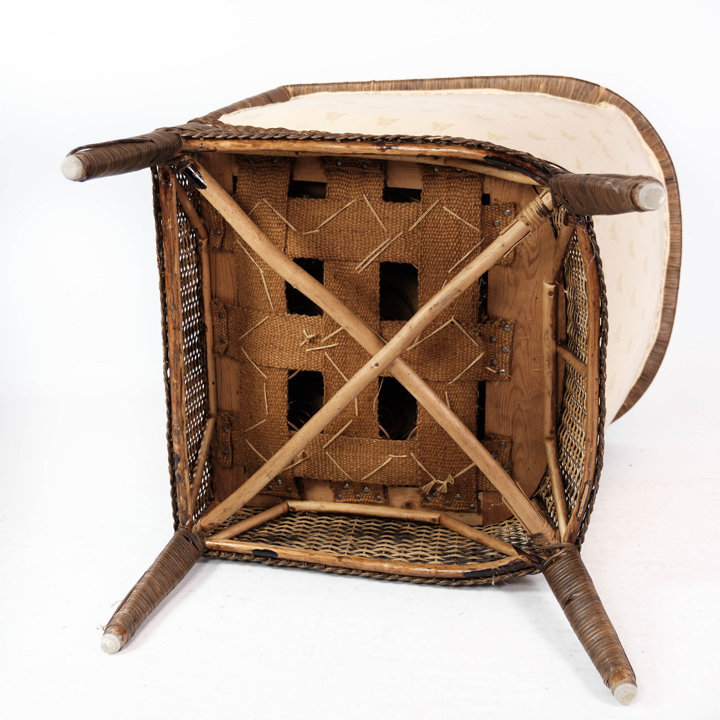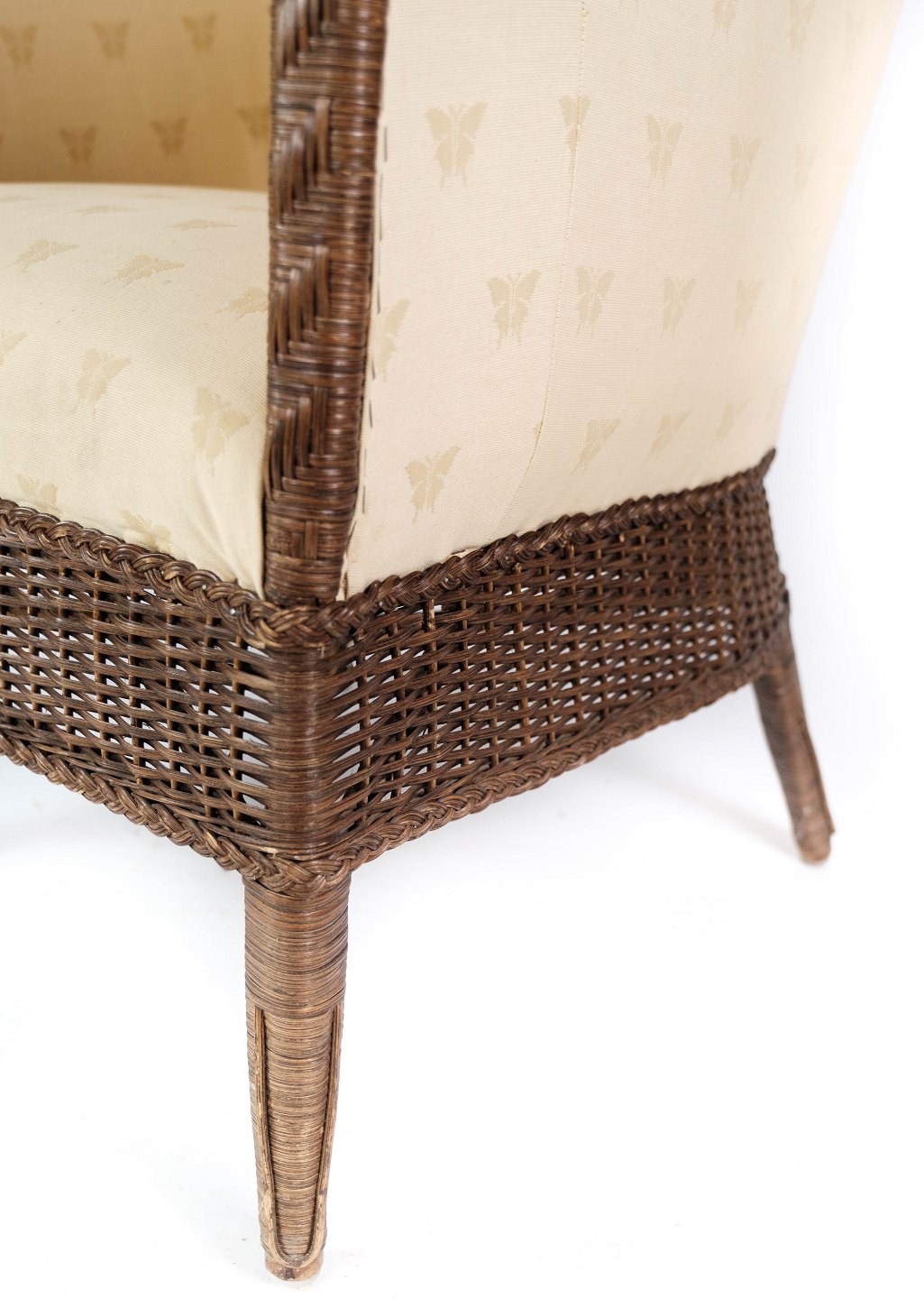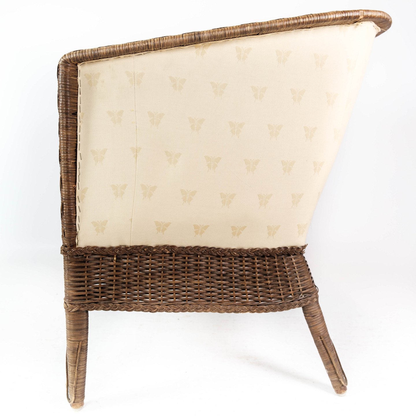 SoldSet of two easy chairs with paper cord and upholstery with light fabric from the 1940s. Both chairs are in great vintage condition.