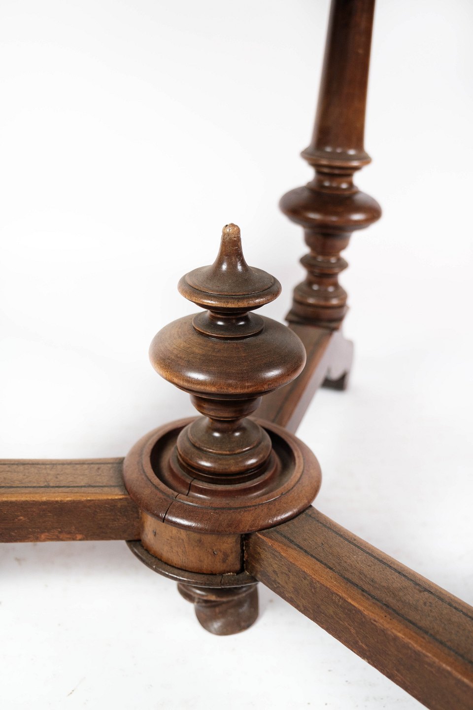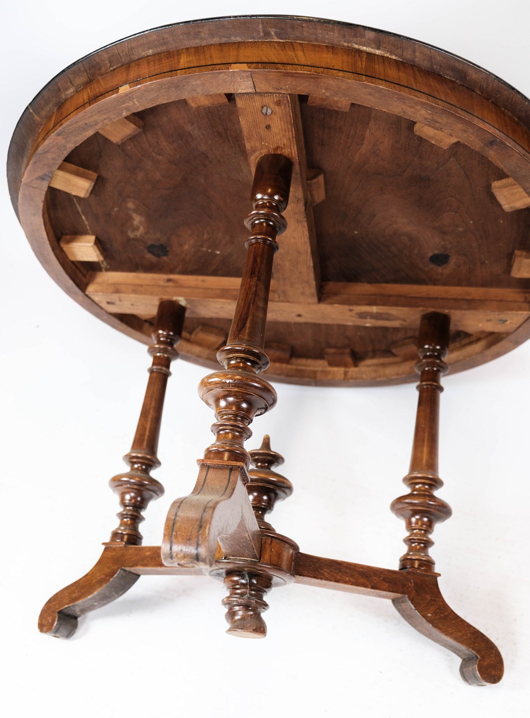 SolgtRundt spisebord af valnød med intarsia, i flot antik stand fra 1890erne.
