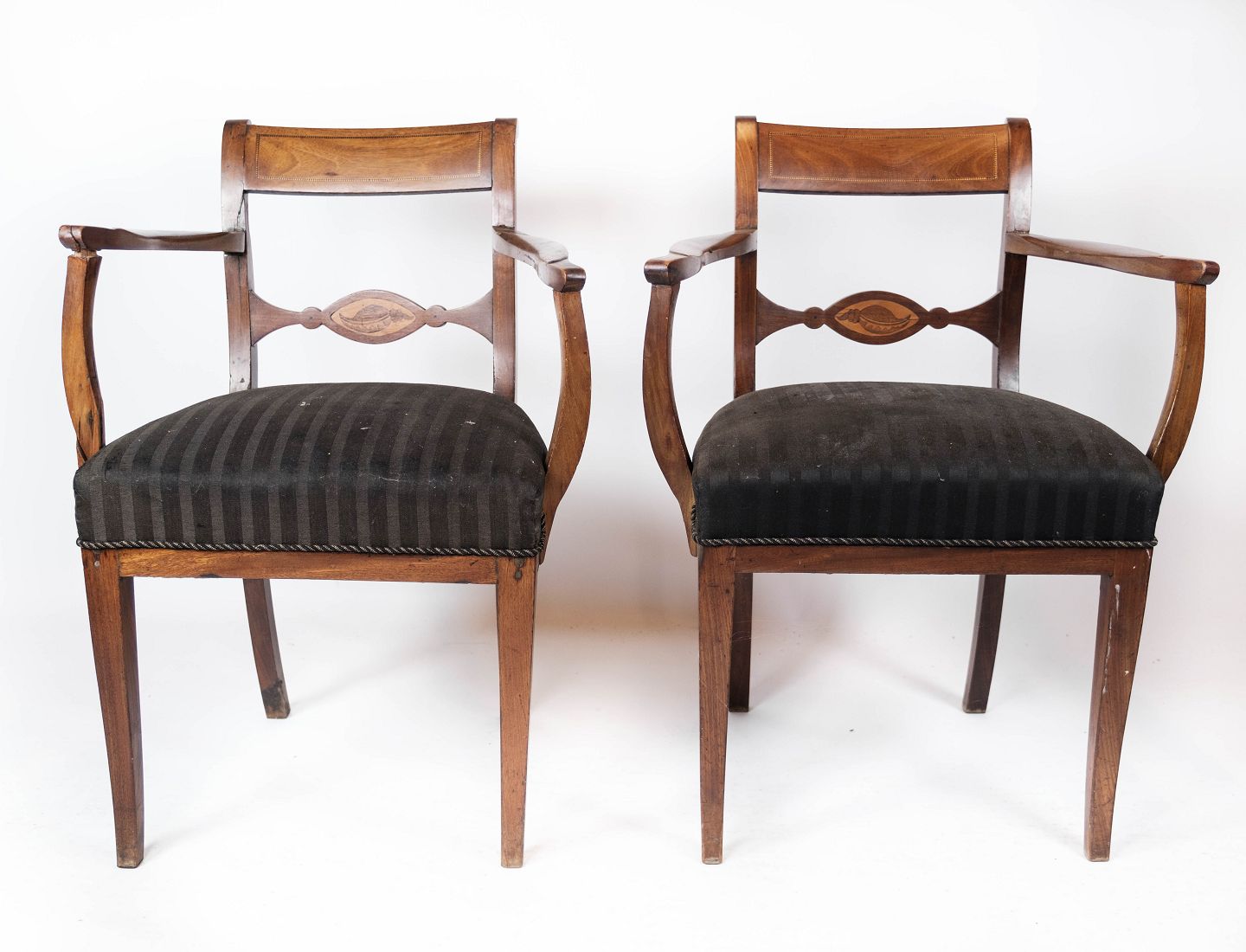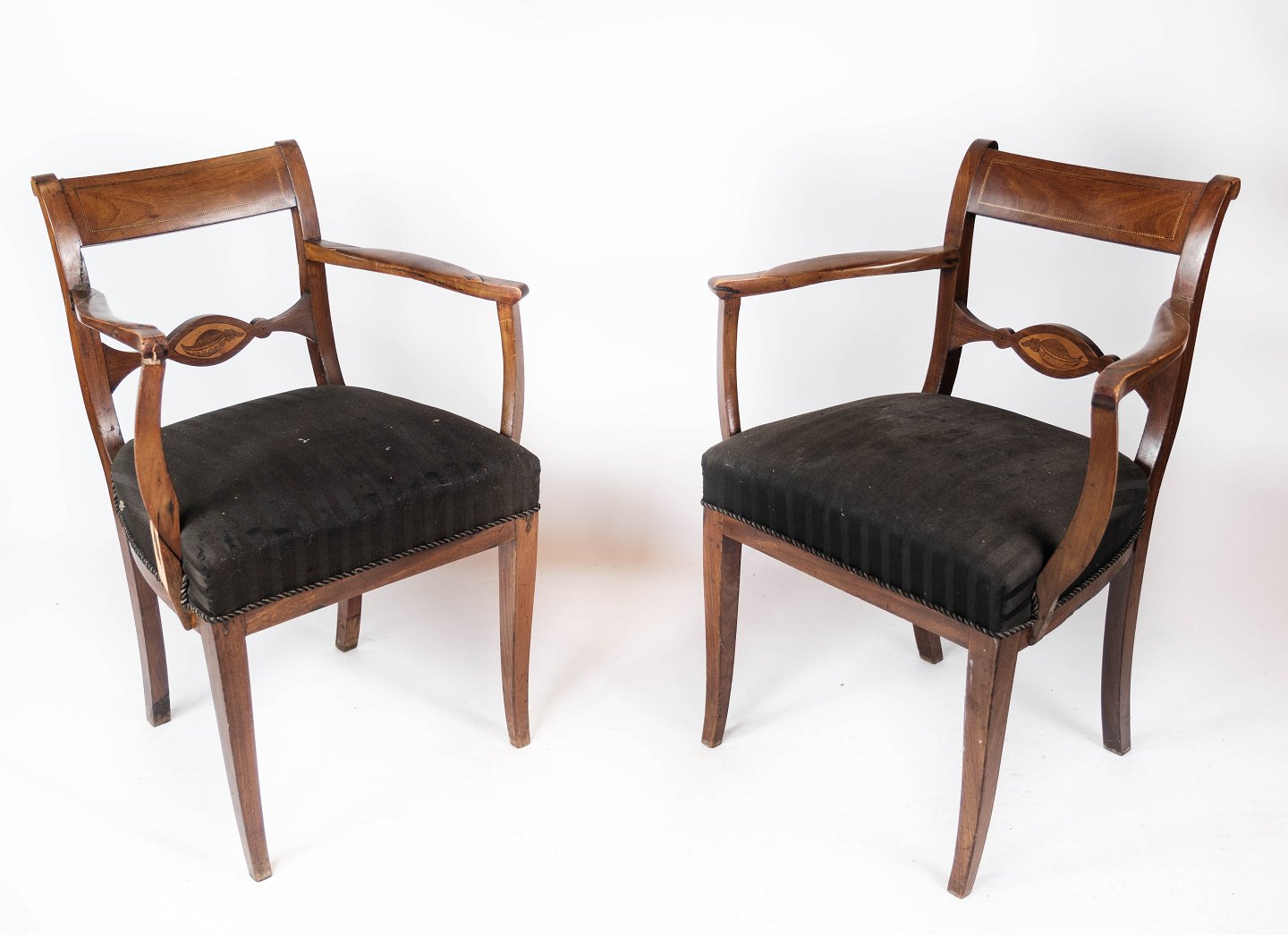 Set of two armchairs of mahogany and upholstered with black fabric, from the 1860s.