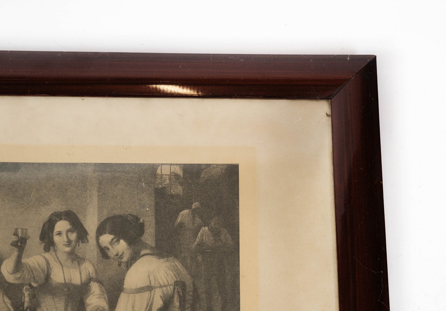 Tryk med portræt motiv og mørk træramme fra 1940erne.