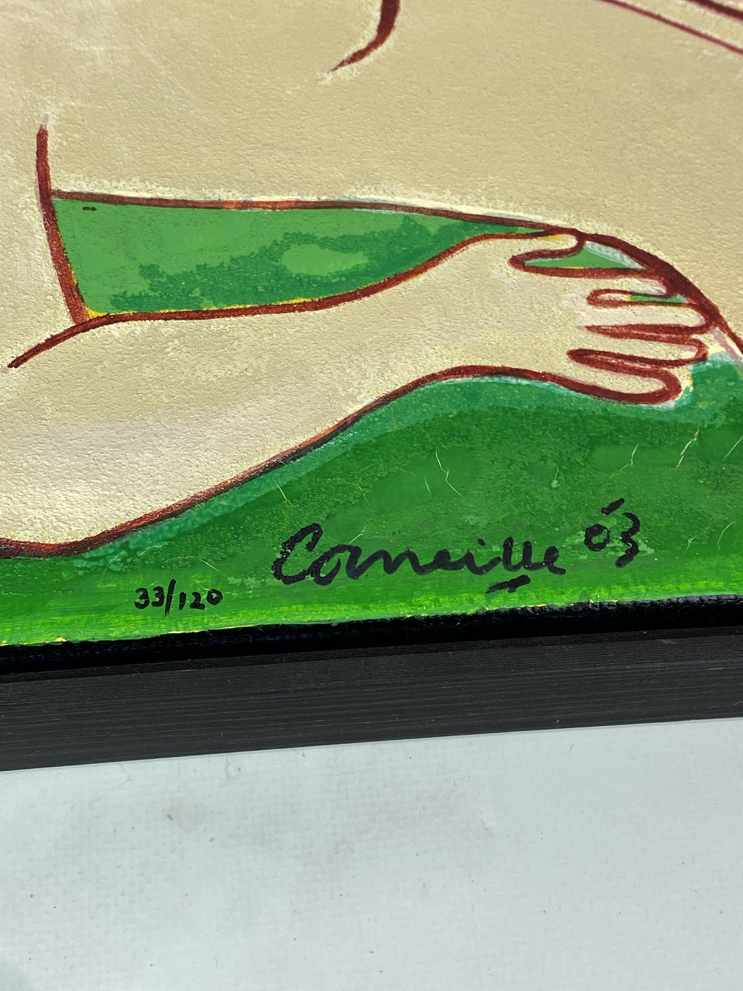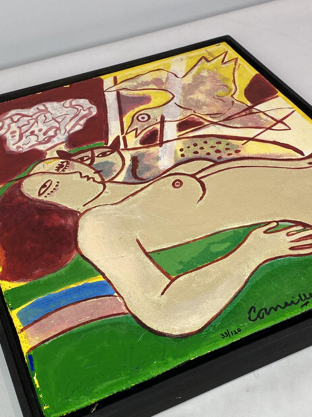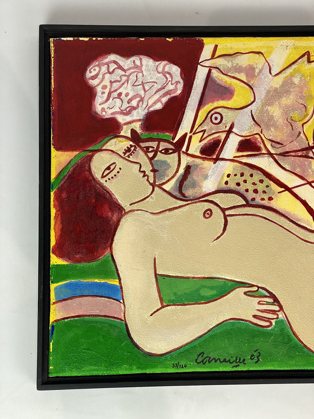 SolgtTerragrafi i stærke farver signeret Corneille, 33/120 fra 2003. Maleriet er med mørk ramme og i flot brugt stand.