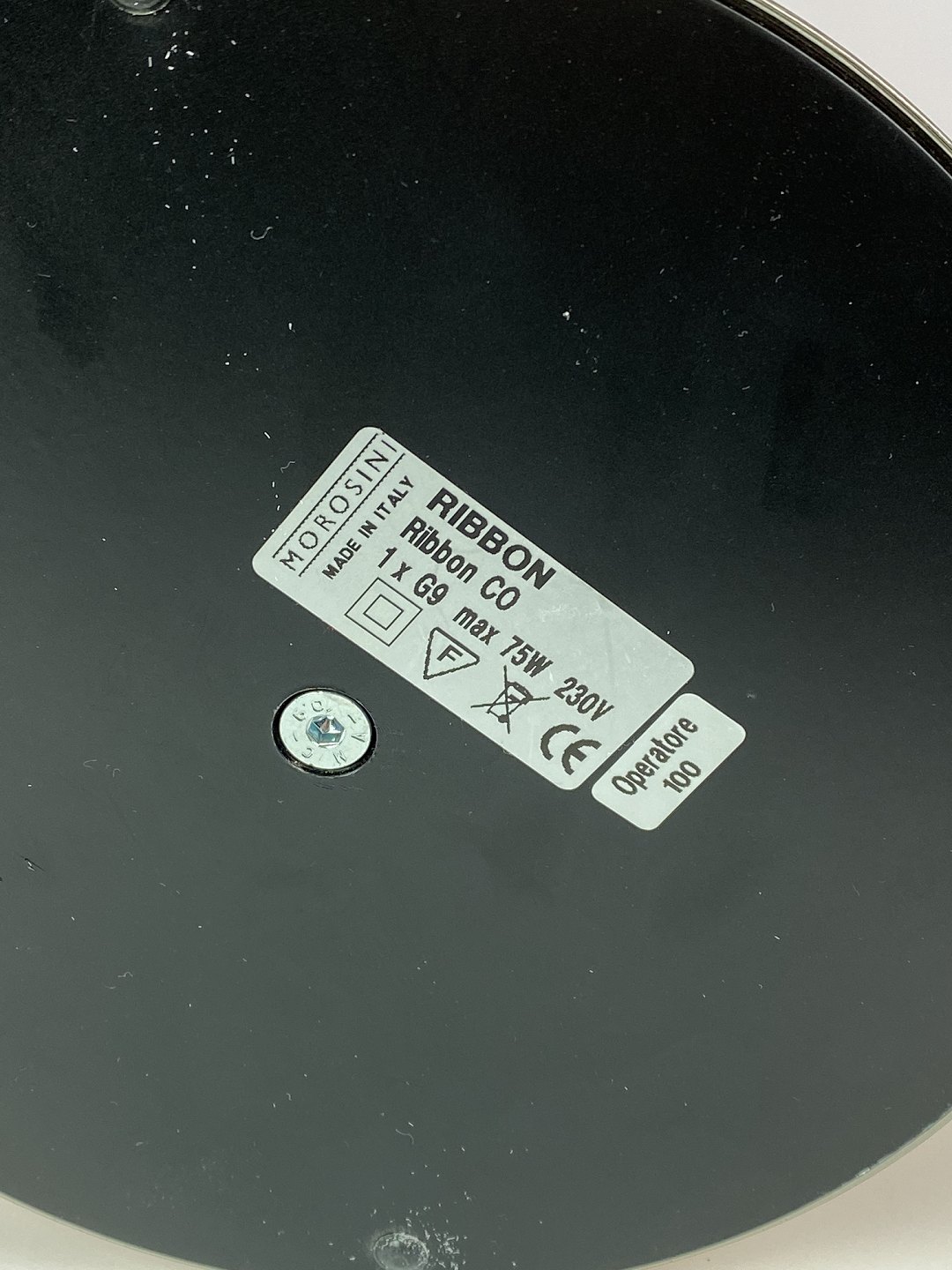 Table lamp, model Ribbon, of Italian design by Morosini from the 1980s. The lamp is with a black shade and frame of metal.