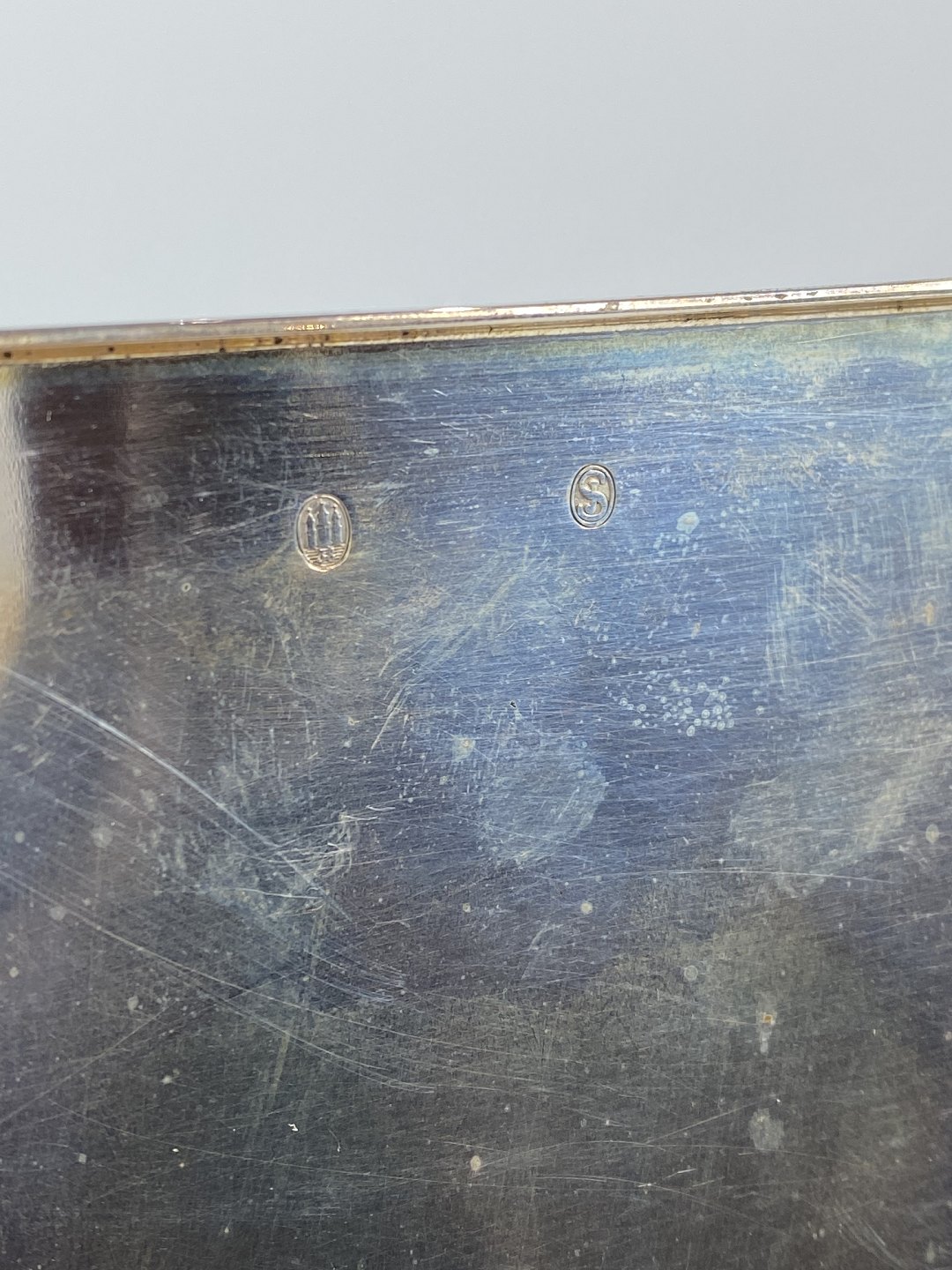Skrin af tretårnet sølv med indlagt mahogni, i flot antik stand fra 1940erne.