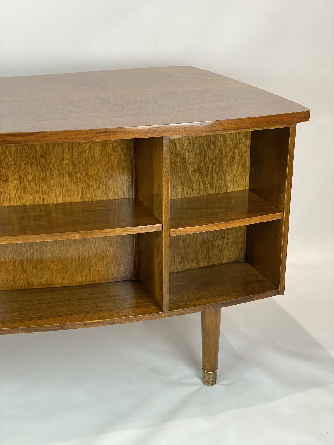 Kai Kristiansen was known for his talent for combining aesthetics with functionality, and this desk is an excellent example of this. The built-in bar cabinet and shutter doors add extra storage space while creating a clean and streamlined look.