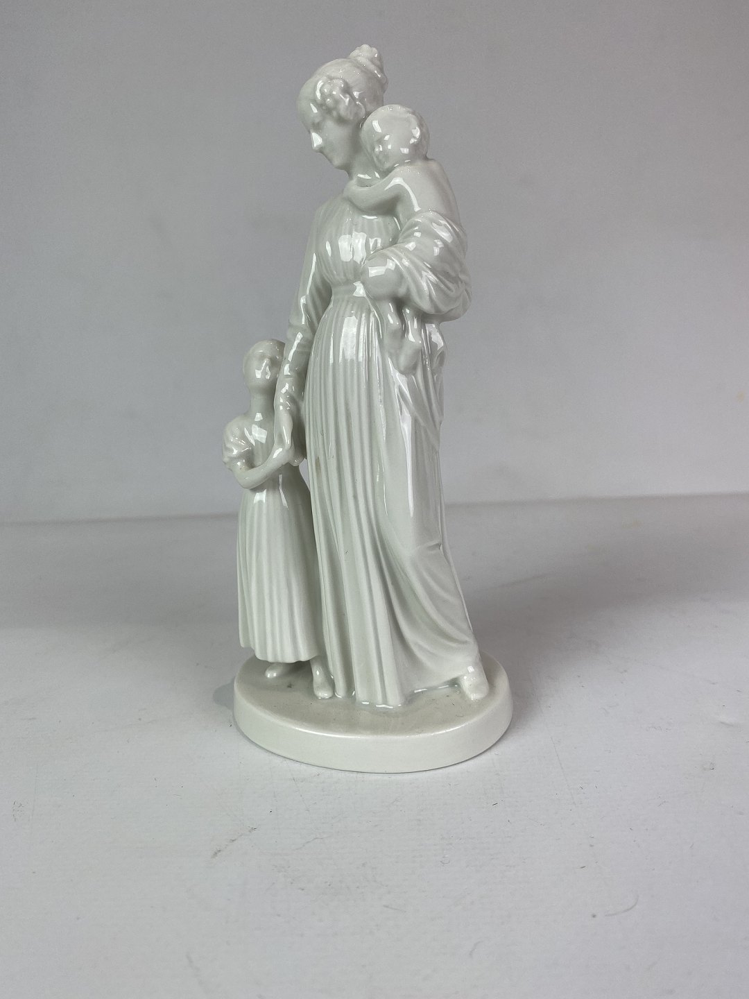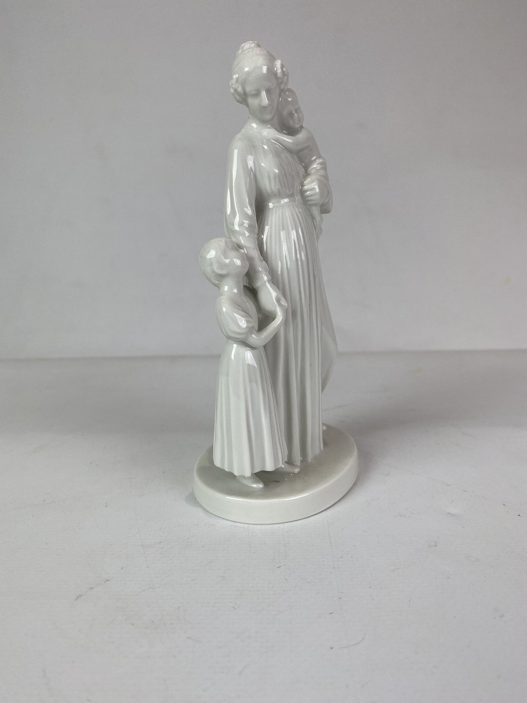 Kgl. hvid porcelænsfigur, dame med to børn. Denne figur er uden nummer, men ellers er dekorationsnummer 12159.