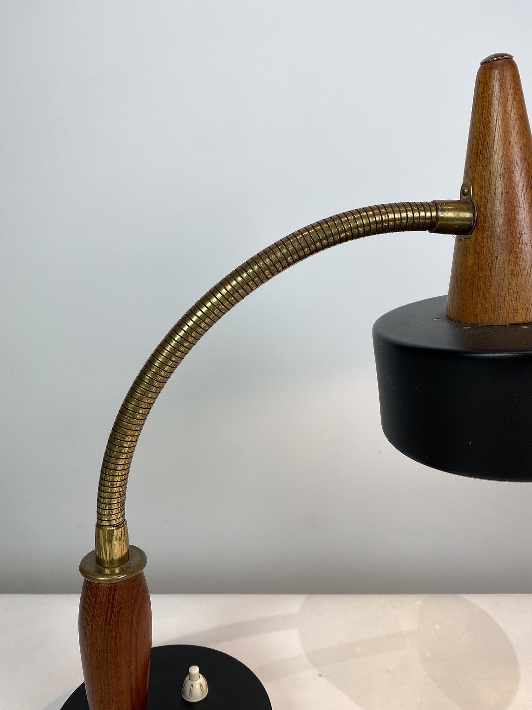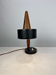 Table lamp of black metal and teak of Danish design from the 1960s. The lamp is in great vintage condition.