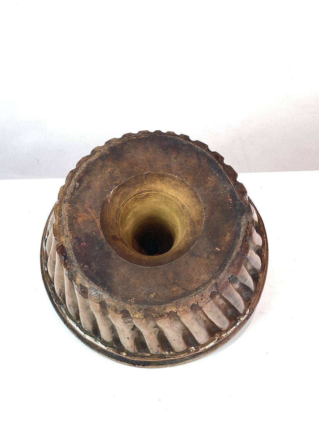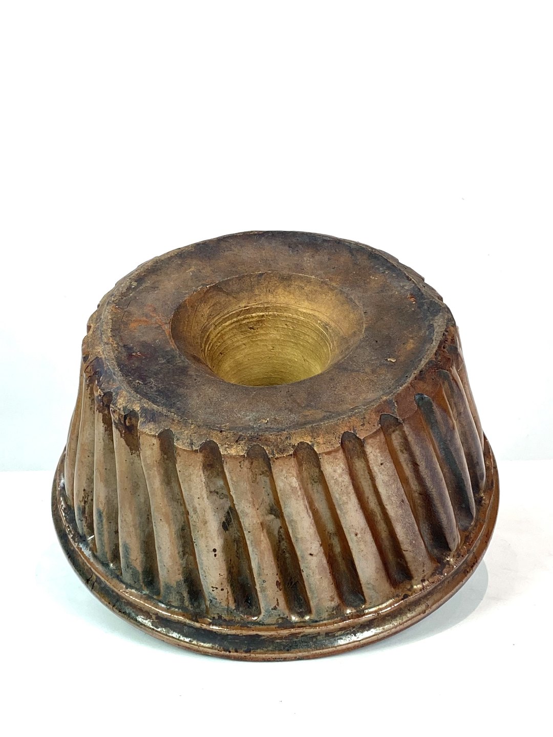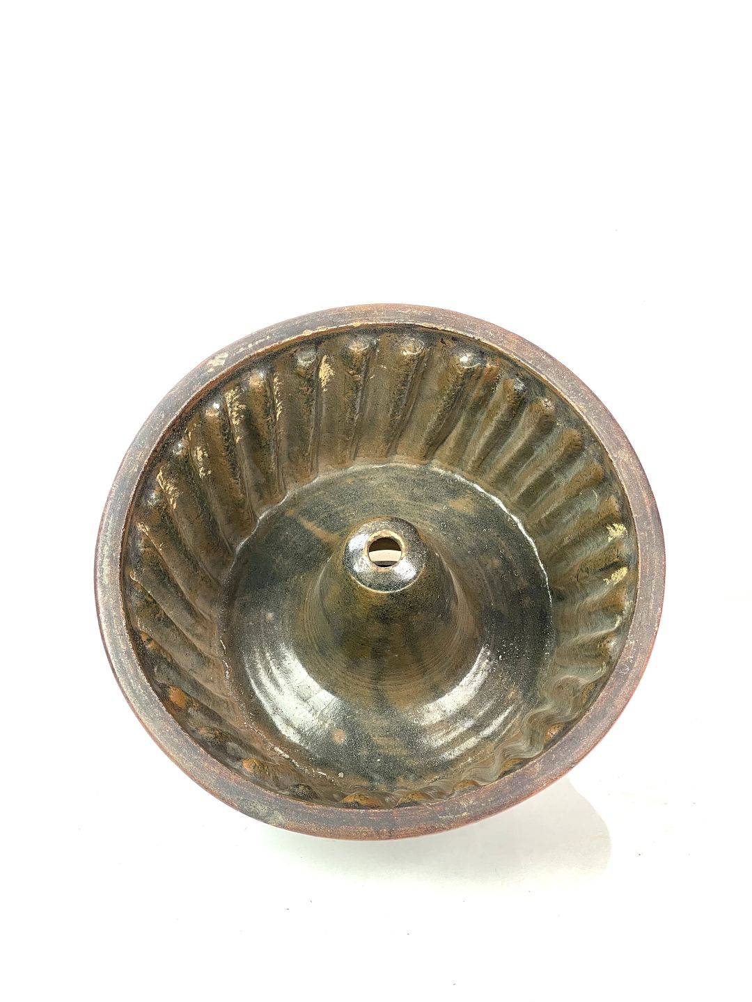 Keramik buddingeform i brune farver fra omkring 1930erne.