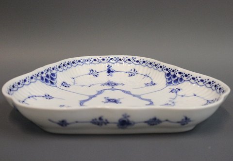 Aflangt keramik fad med blå glasur fra omkring 1950erne. Fadet er i flot brugt stand.