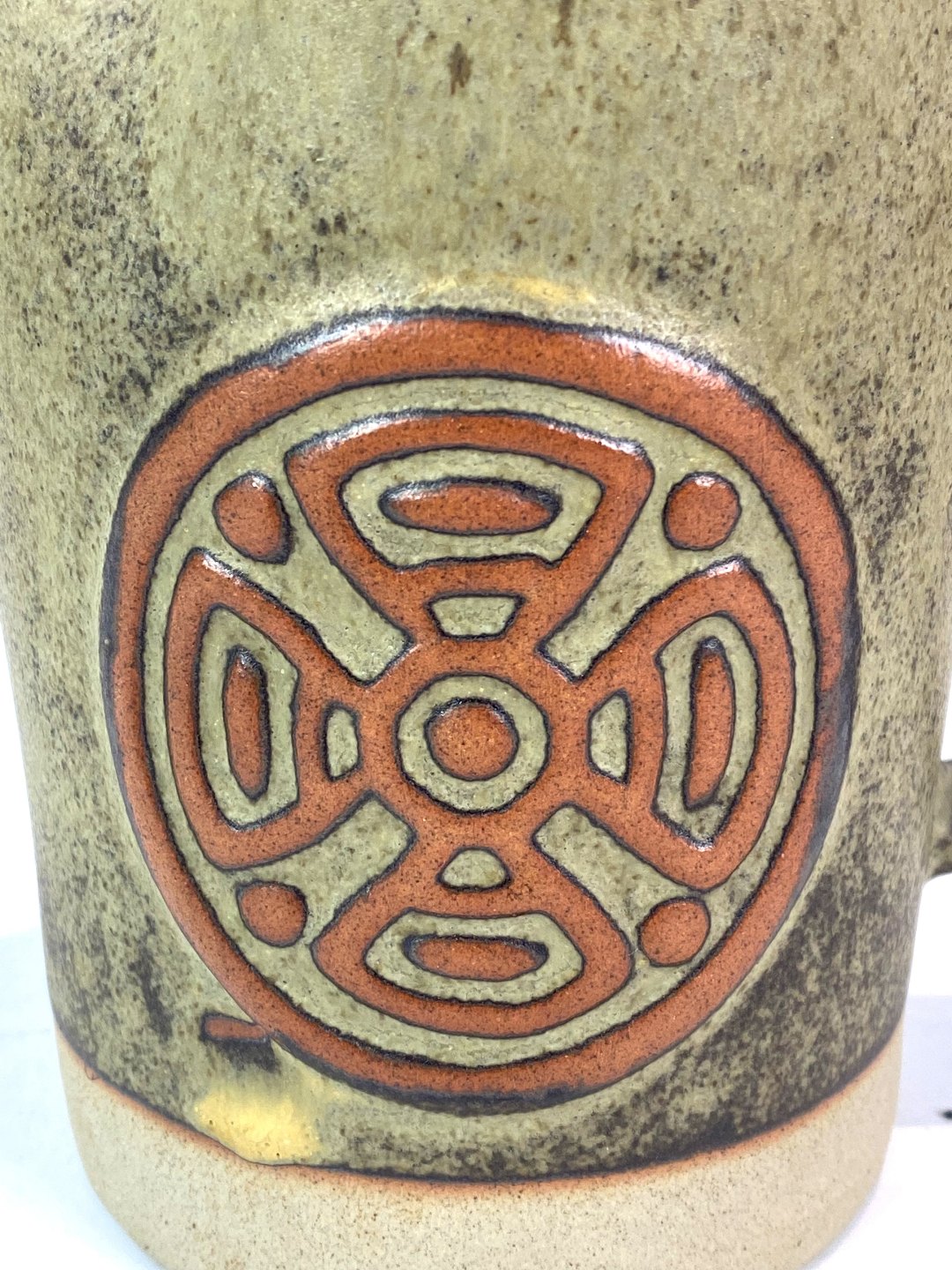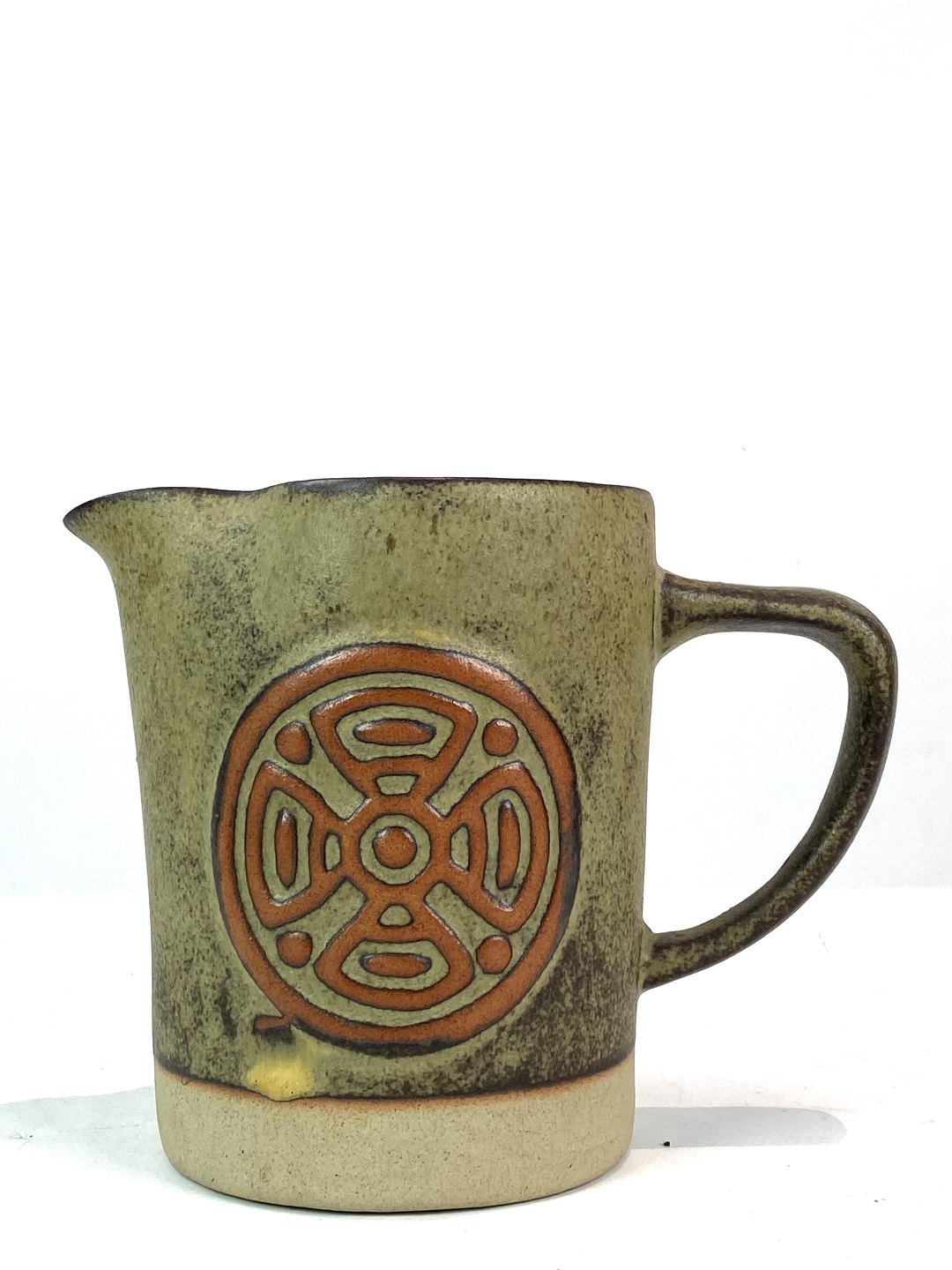 Keramik kande i brune farver med mønster, fra omkring 1960erne. Kanden er i flot brugt stand.