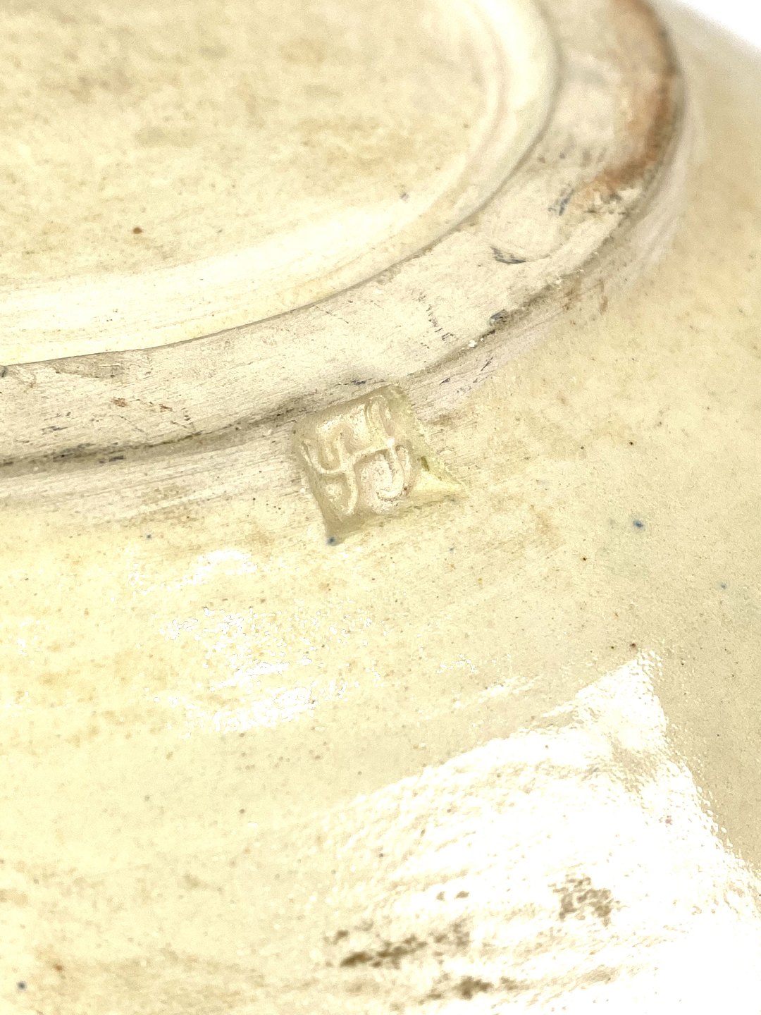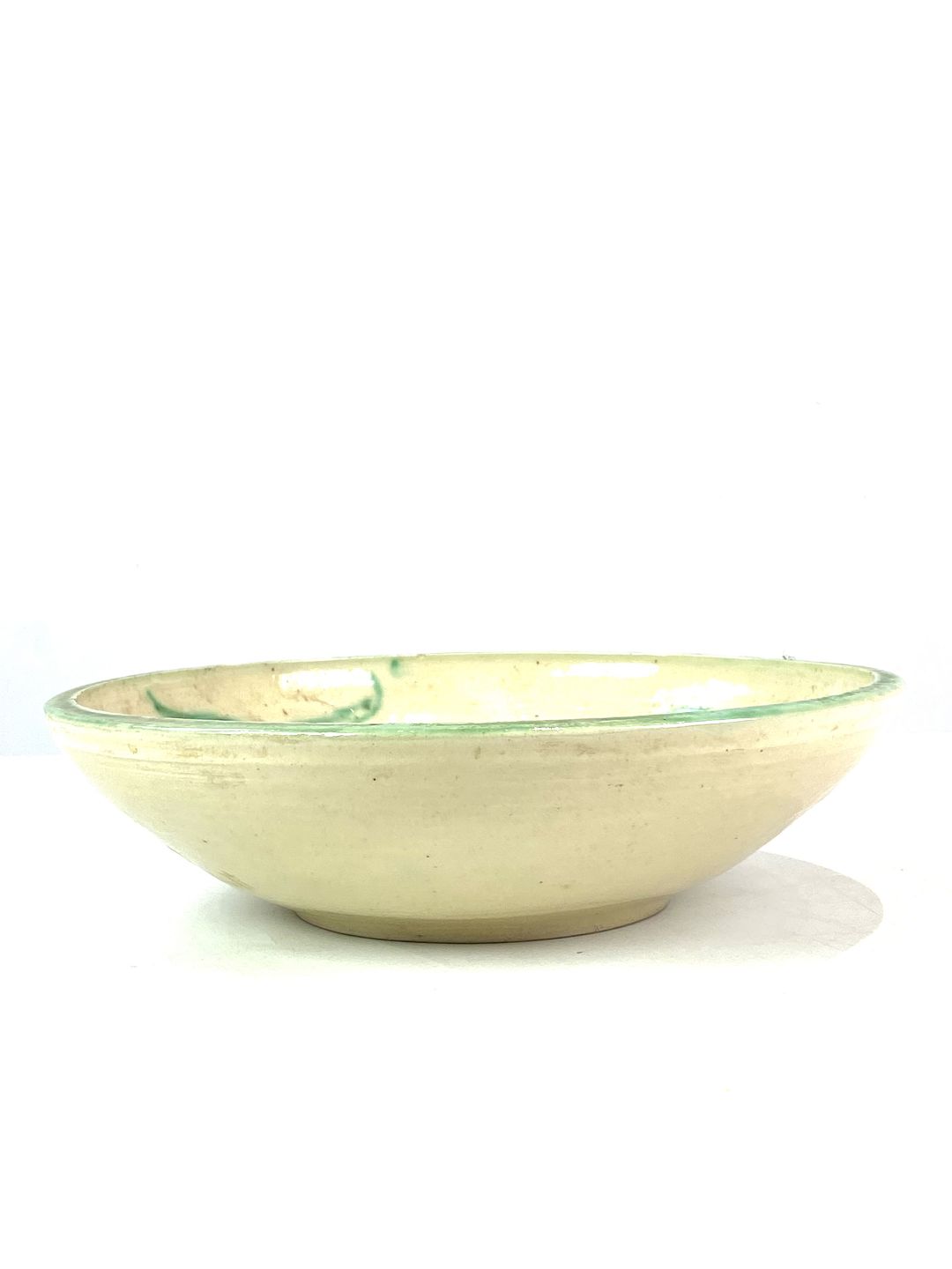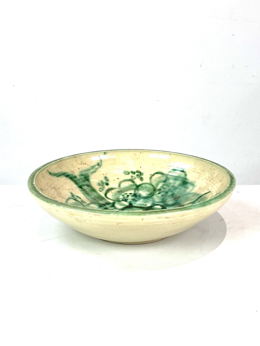 SolgtKeramik fad med lys glasur og dekoreret med grønt mønster fra 1940erne og signeret H. Fadet er i flot brugt stand.