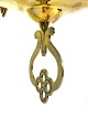 SolgtHængelampe til petroleum i messing og med skærm af opal glas af Jugend stil fra omkring 1920erne. Lampen er i flot antik stand.