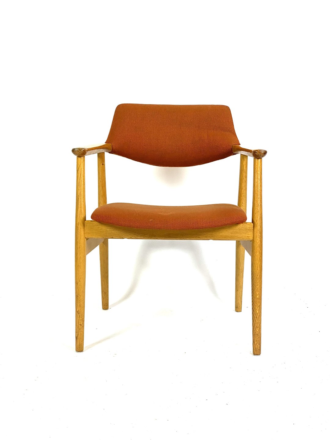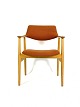 Seks armstole i eg og polstret med orange uldstof designet af Erik Kirkegaard fra 1960erne. Stolene er i flot brugt stand.
