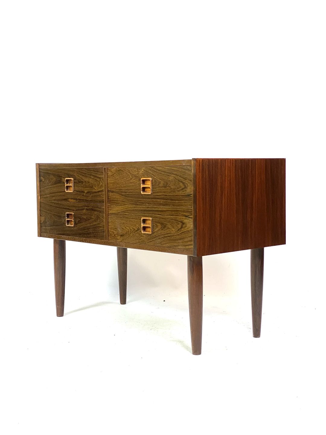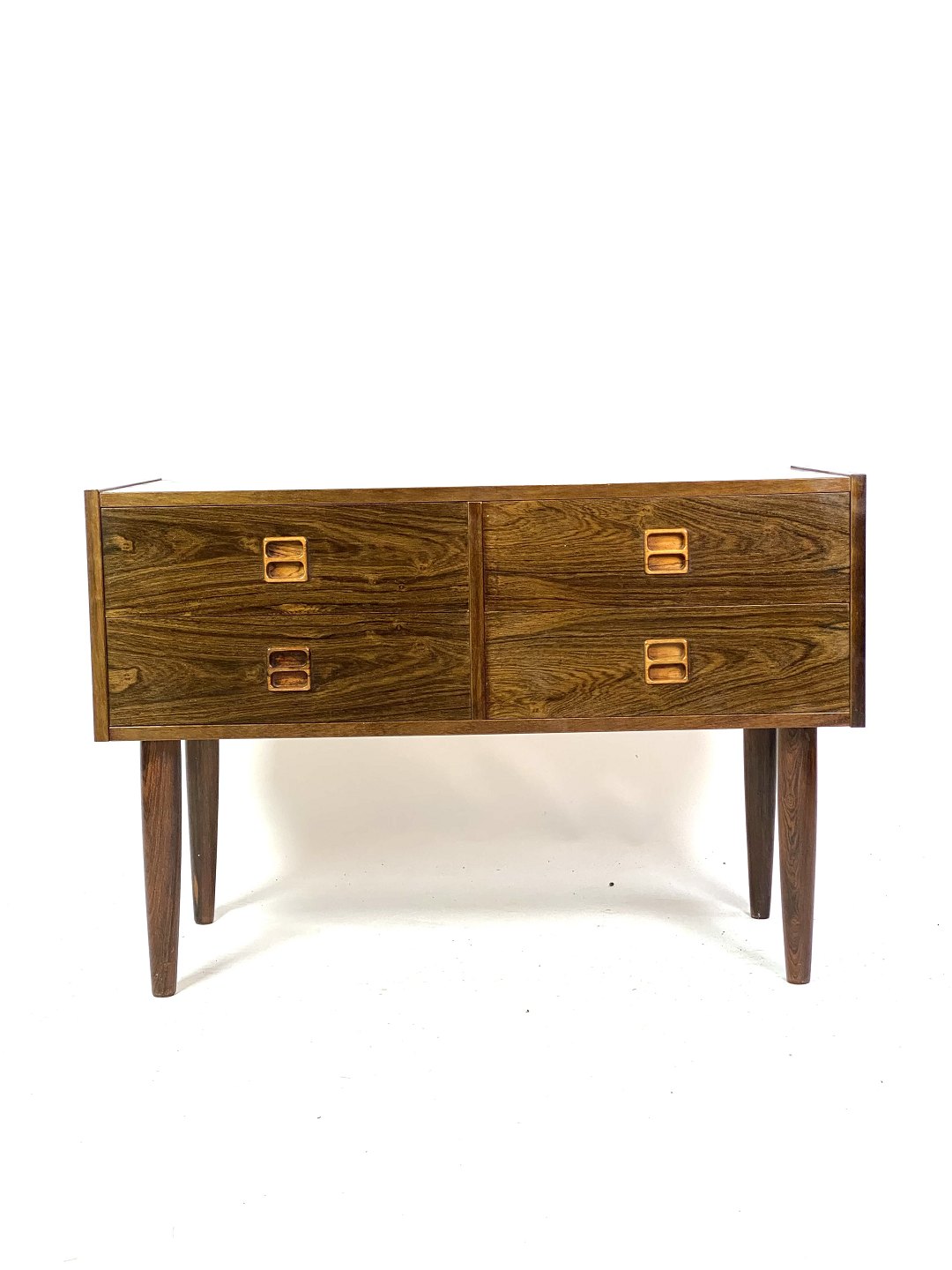 Get a timeless piece of Danish design history with this beautiful chest of drawers in rosewood from the 1960s. The rosewood not only adds warmth to the room, but it also highlights the fine quality and craftsmanship characteristic of Danish furniture design at the time.