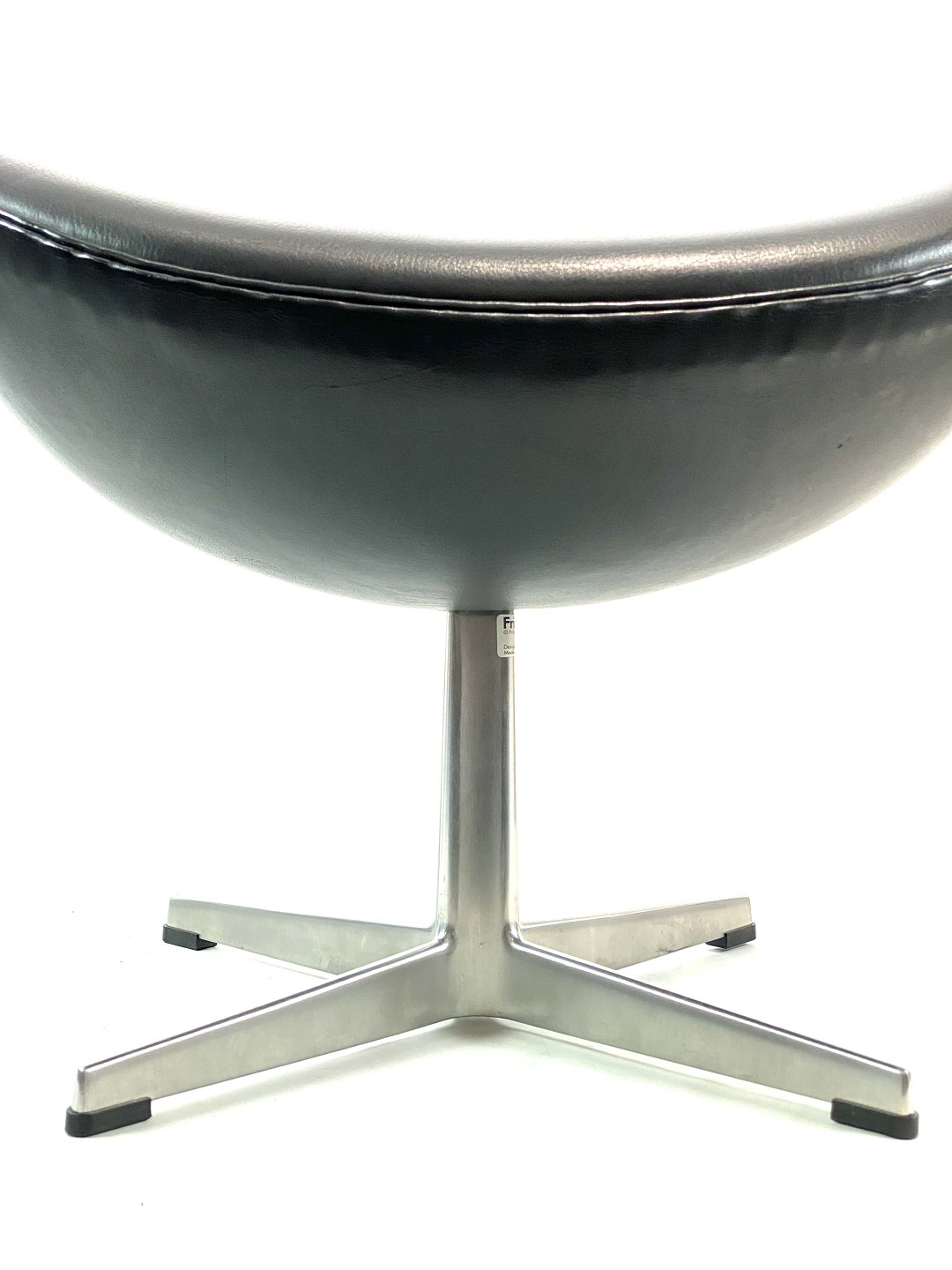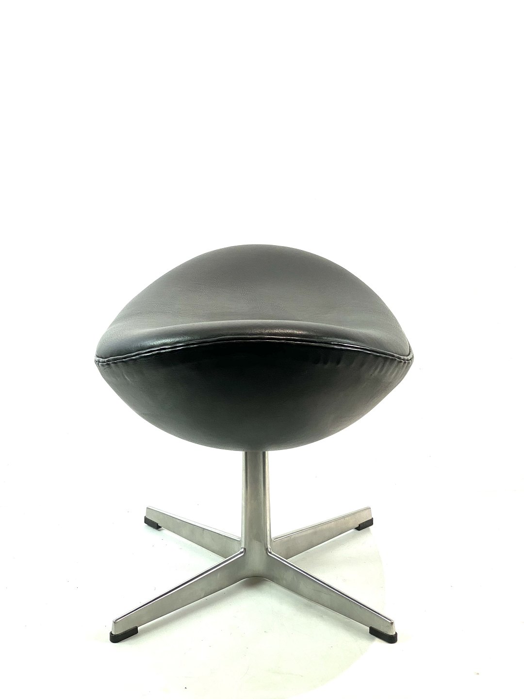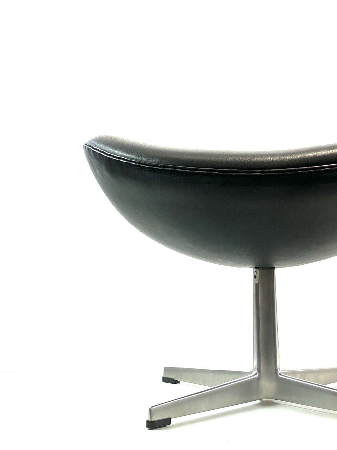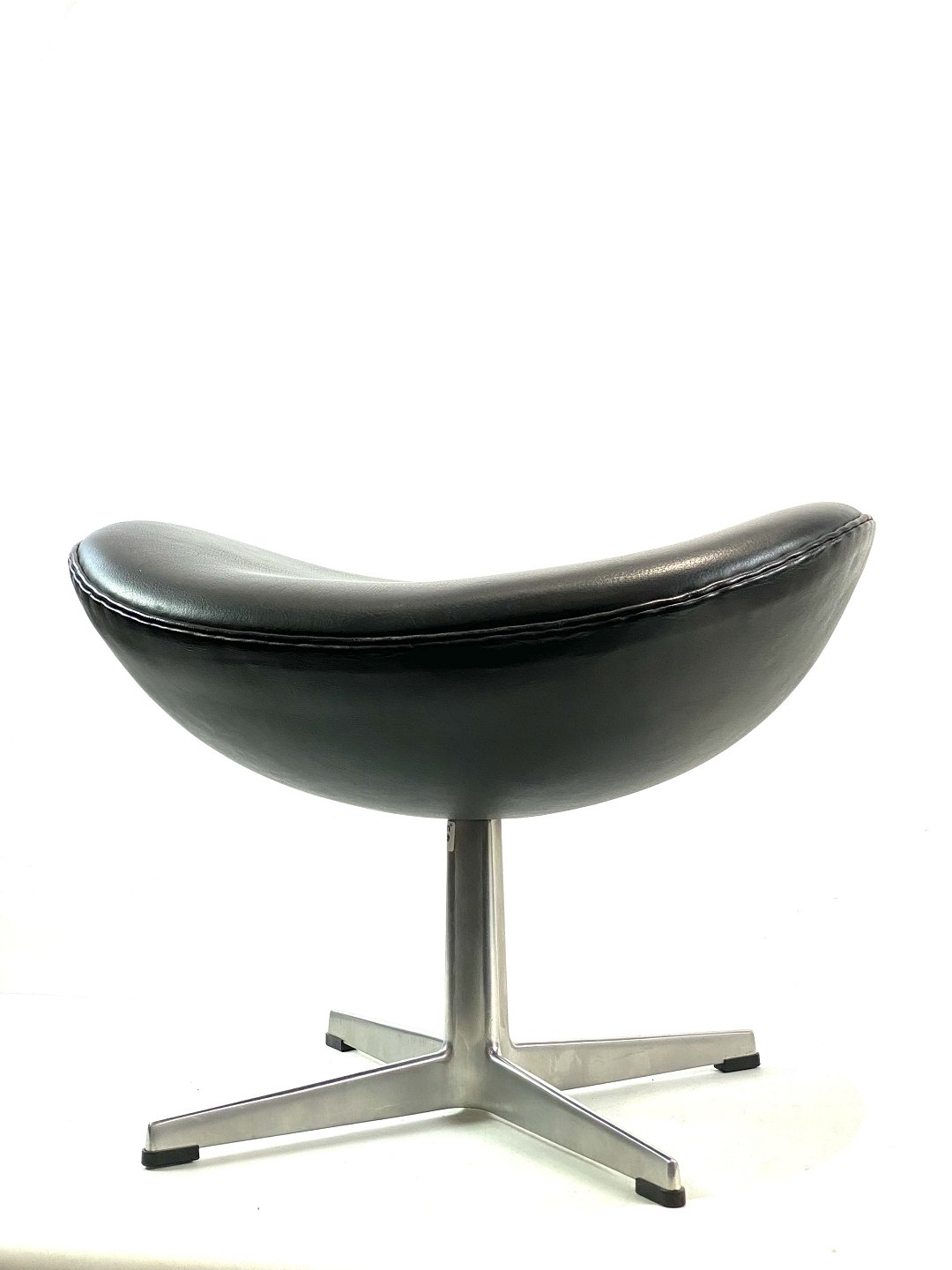 Foot stool for the Egg, model 3127, upholstered in black elegance leather, designed by Arne Jacobsen in 1958 and manufactured by Fritz Hansen in 1998. The stool is in great vintage condition.