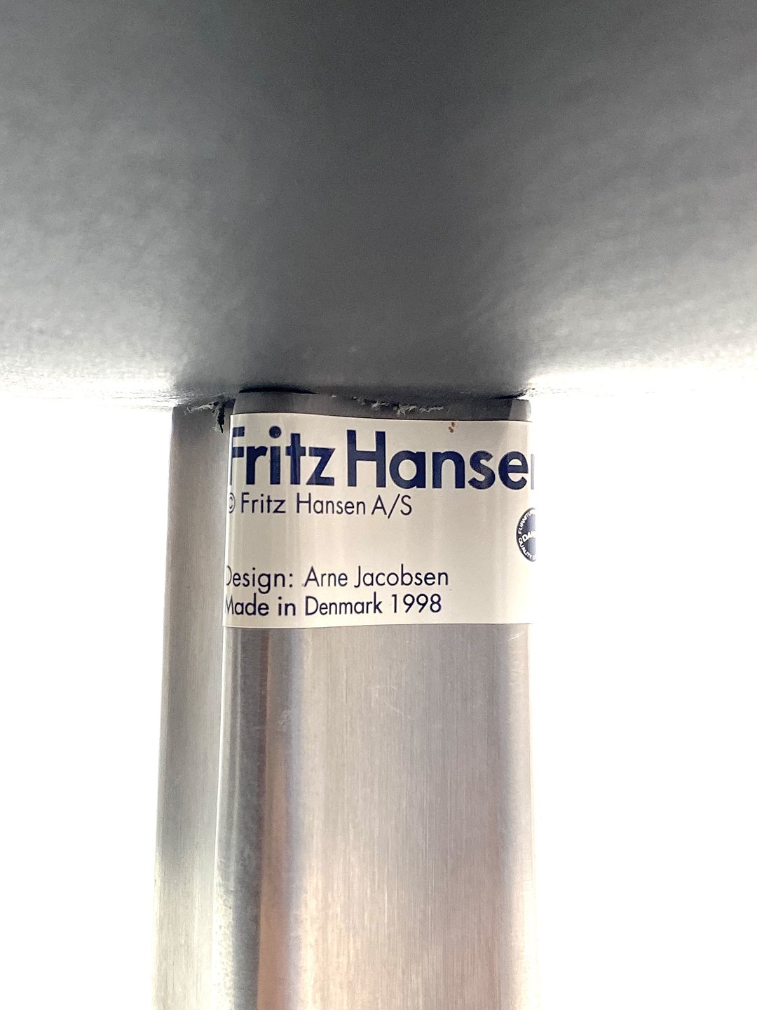 Foot stool for the Egg, model 3127, upholstered in black elegance leather, designed by Arne Jacobsen in 1958 and manufactured by Fritz Hansen in 1998.