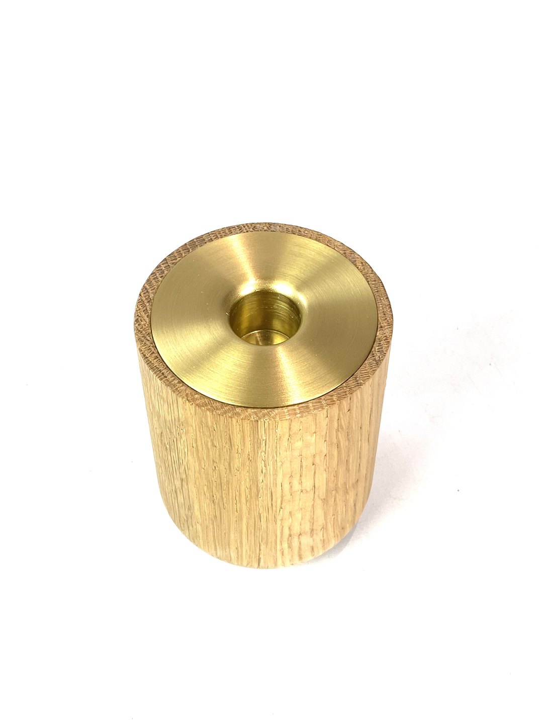 Oak Nordic candlestick in oak and brass by Andersen Furniture.