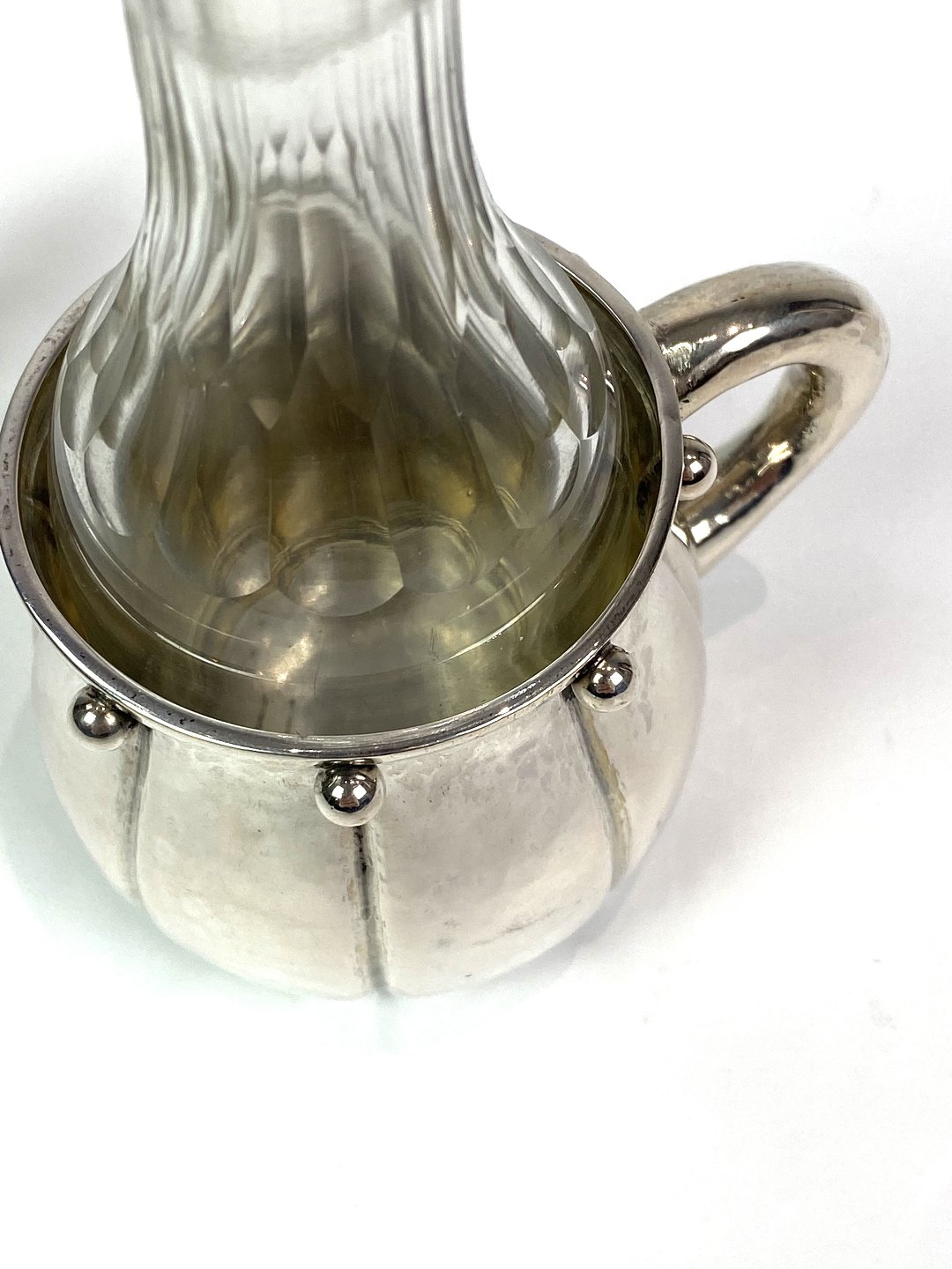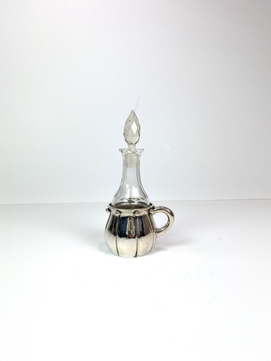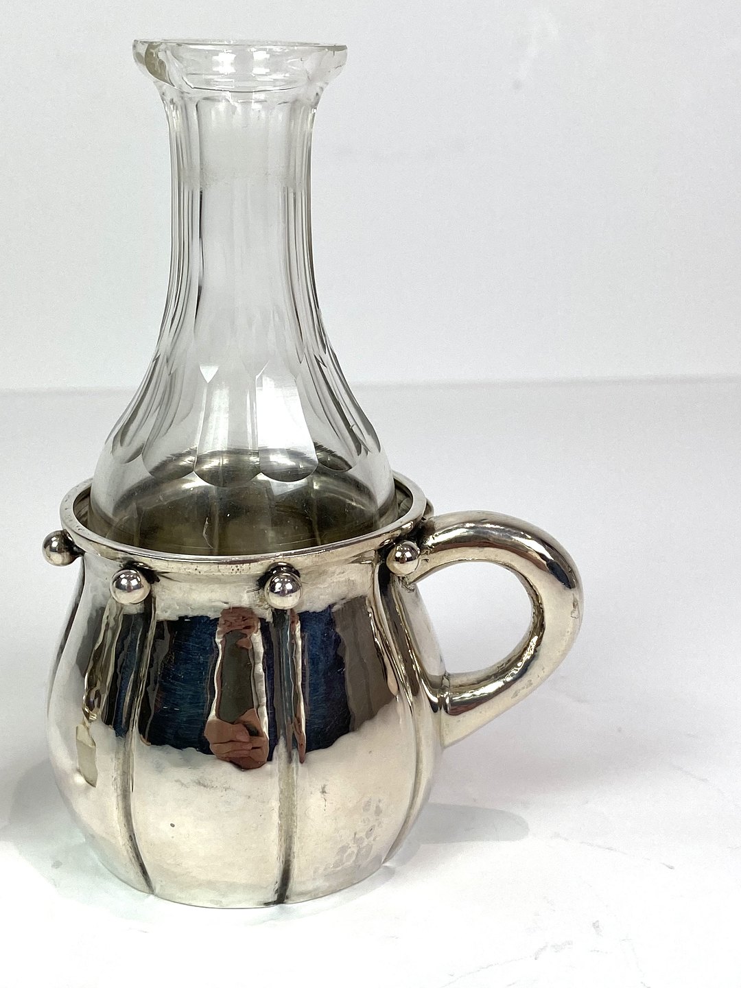 Kande med krystal glas, og af tretårnet sølv. Beregnet til olie og eddike. Stemplet H-CF fra 1919