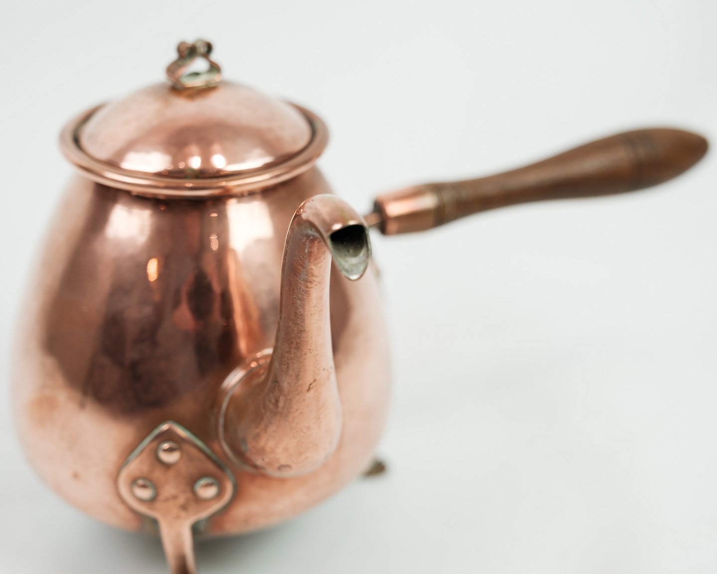 Set of 3 copper parts coffee pot sugar bowl and cream jug from around 1960s respectively. All parts in very fine used condition.