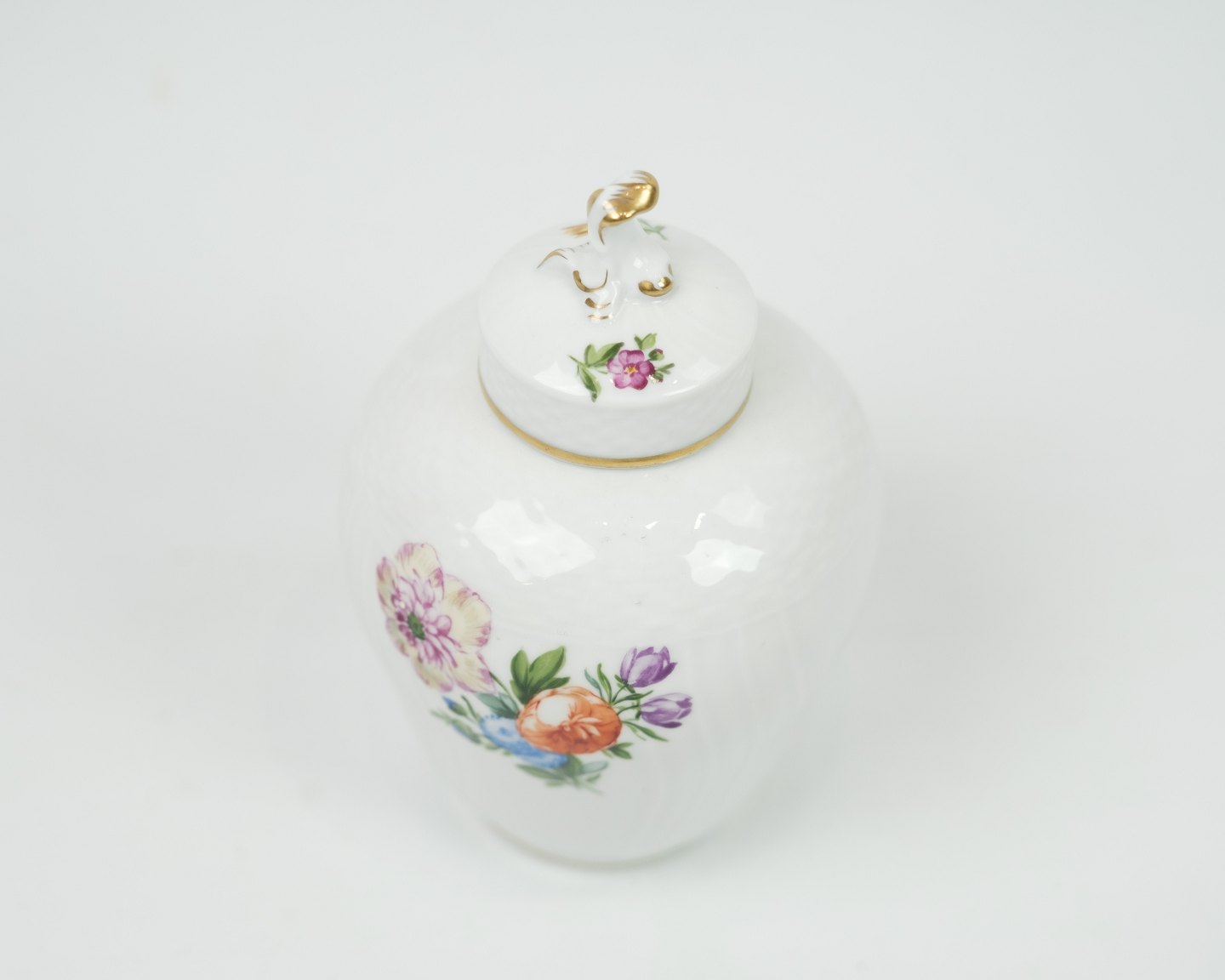Kgl lågkrukke / bomberier krukke i mønstret saksisk blomst nr. 1684. Fremstår hel og uden skader