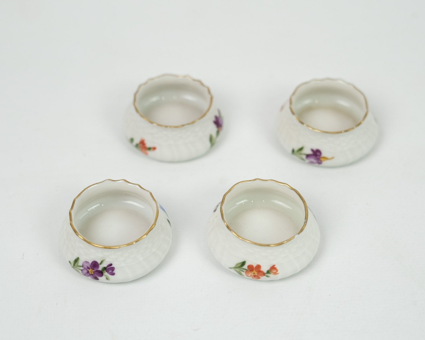 Small royal salt shaker in the pattern Saxon flower no. 1708. Appears intact and without damage