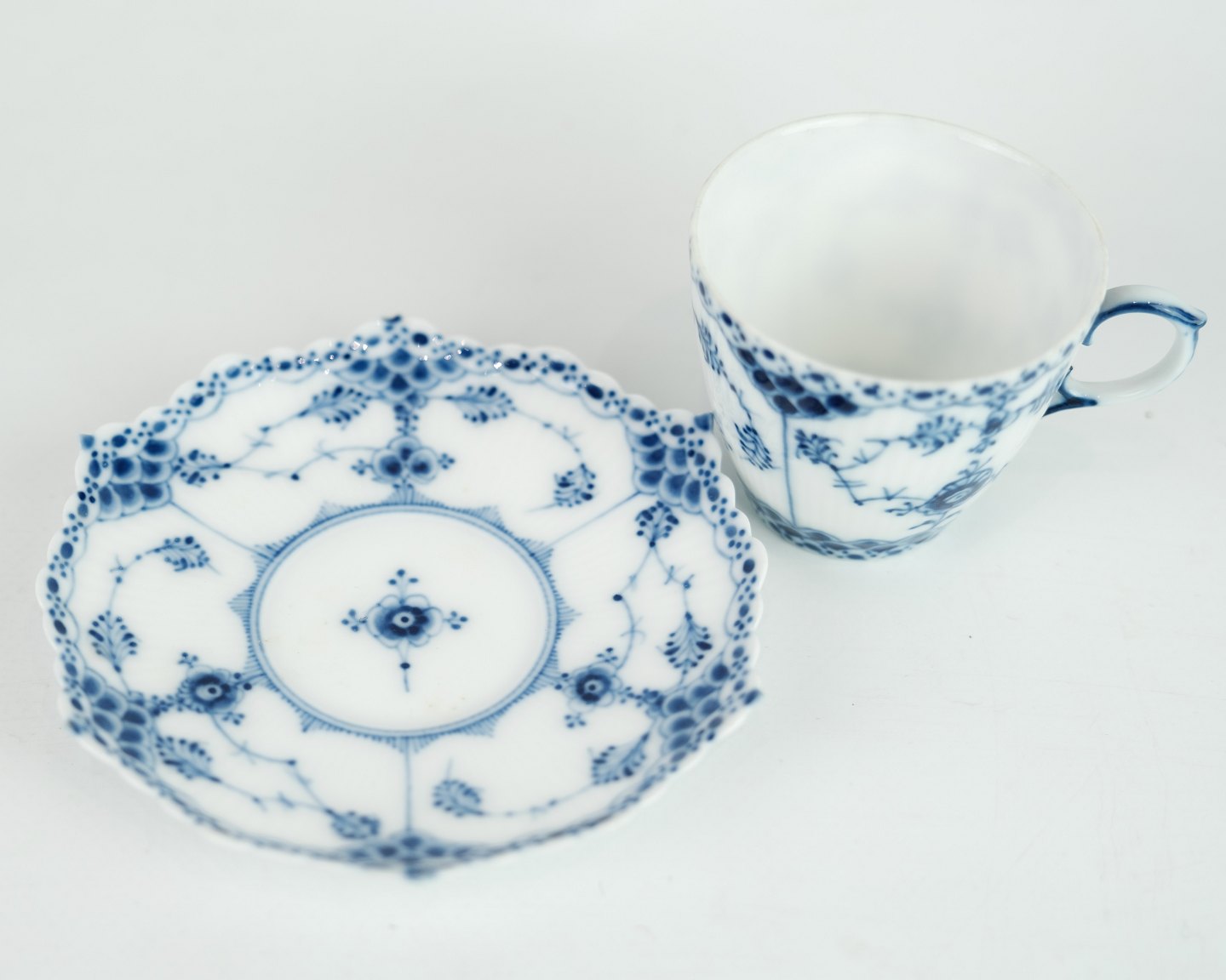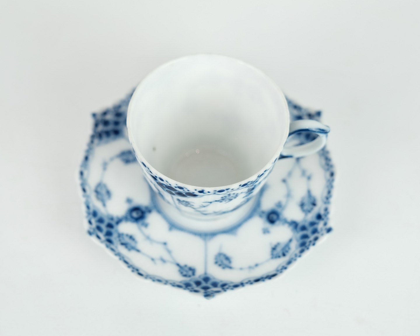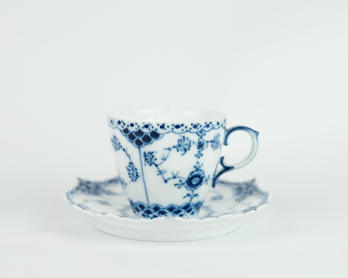 SoldRoyal Copenhagen Blue Fluted Full Lace, small espresso cup with accompanying saucer no. 1/1038. The item is in very fine used condition