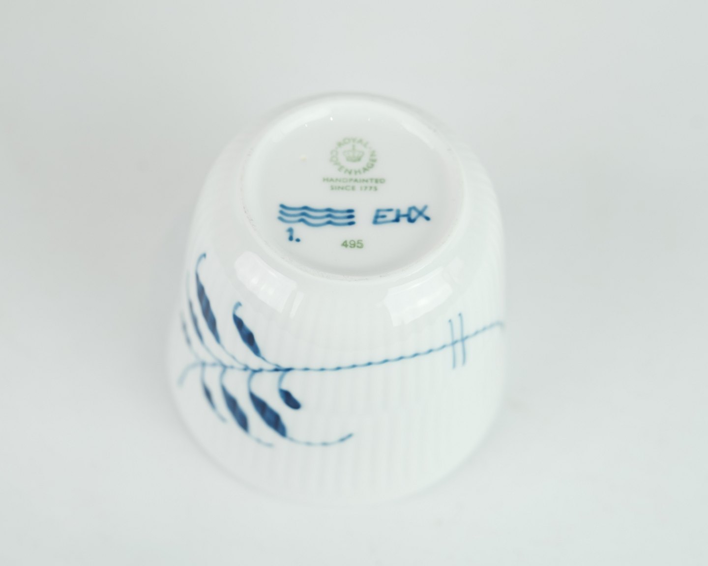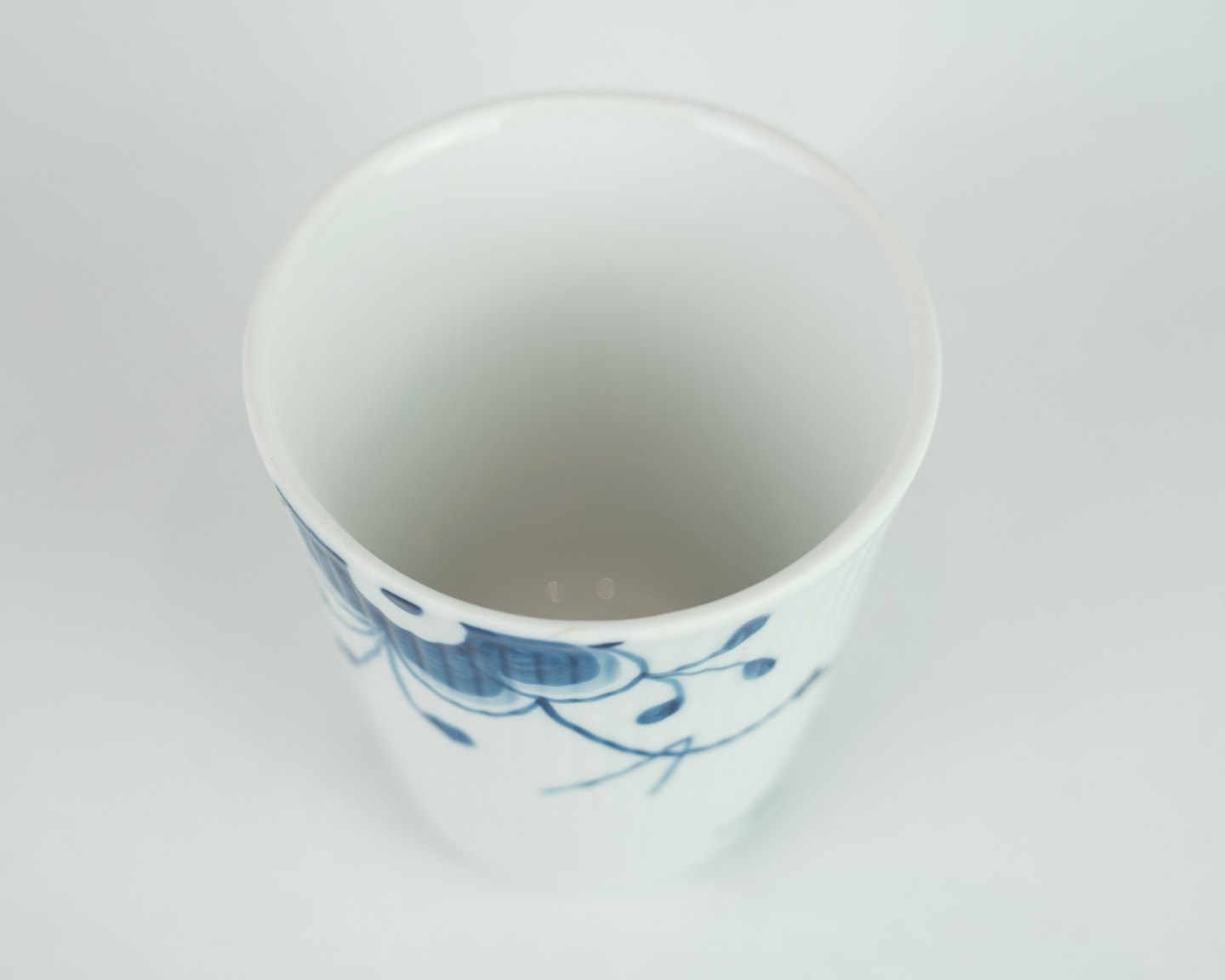 SolgtTermokop blå mega riflet, designet af Karen Kjældgård-Larsen for Royal Copenhagen fra år 2000. Koppen er håndmalet med det flotte blå kongelige farve.