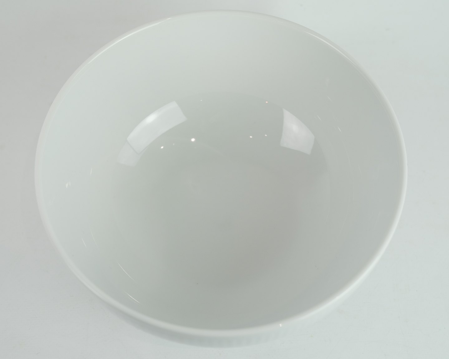 SolgtRoyal Copenhagen hvid riflet skål, designet af Arnold krog. Denne serveringsskål er Ø21 og står i meget fin brugt stand.