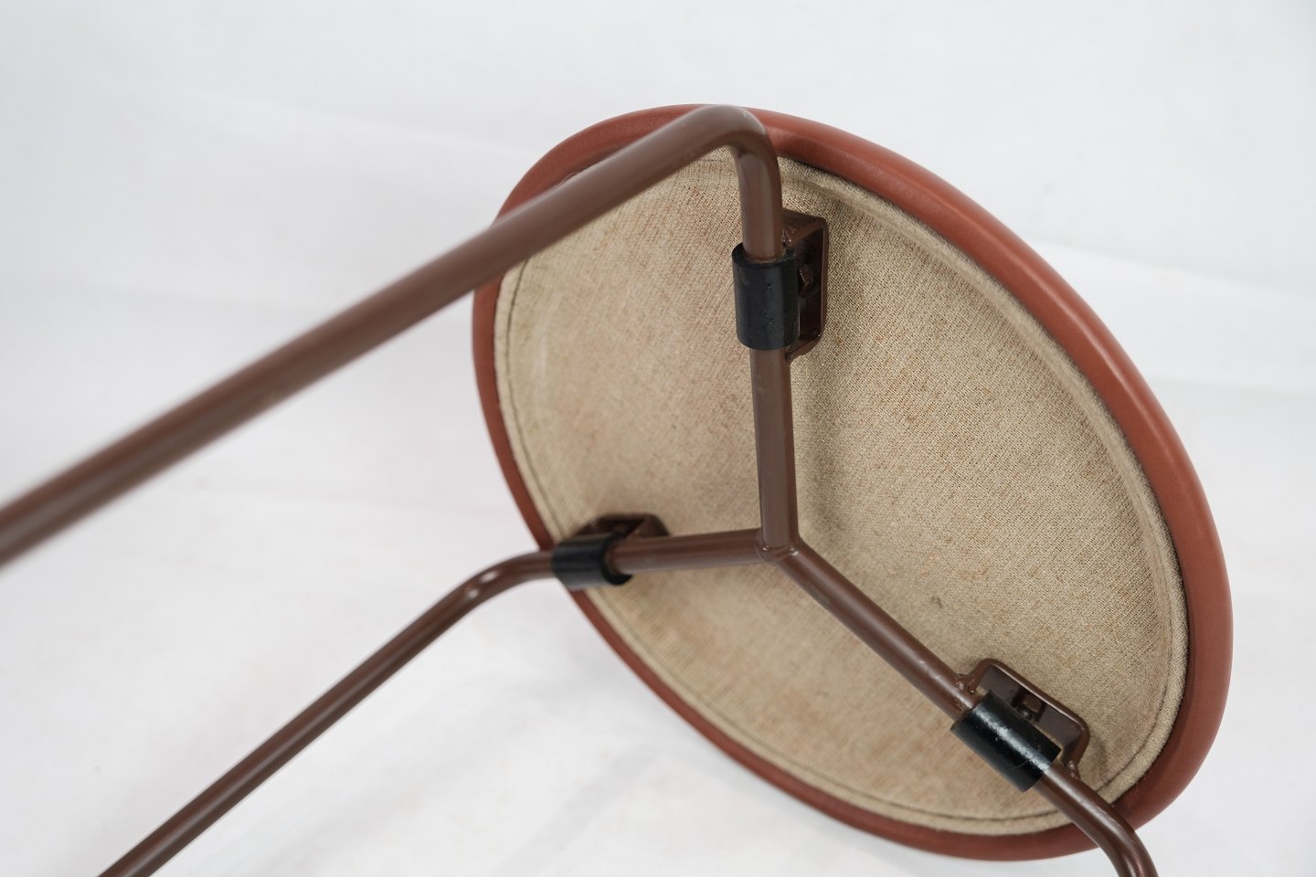 SoldArne Jacobsen Dot stool / stool with leather and brown painted frame from around the 1960s. It is in very fine used condition.