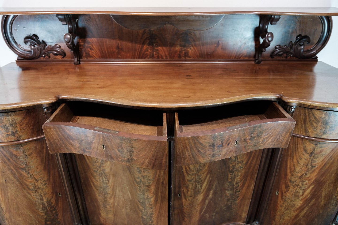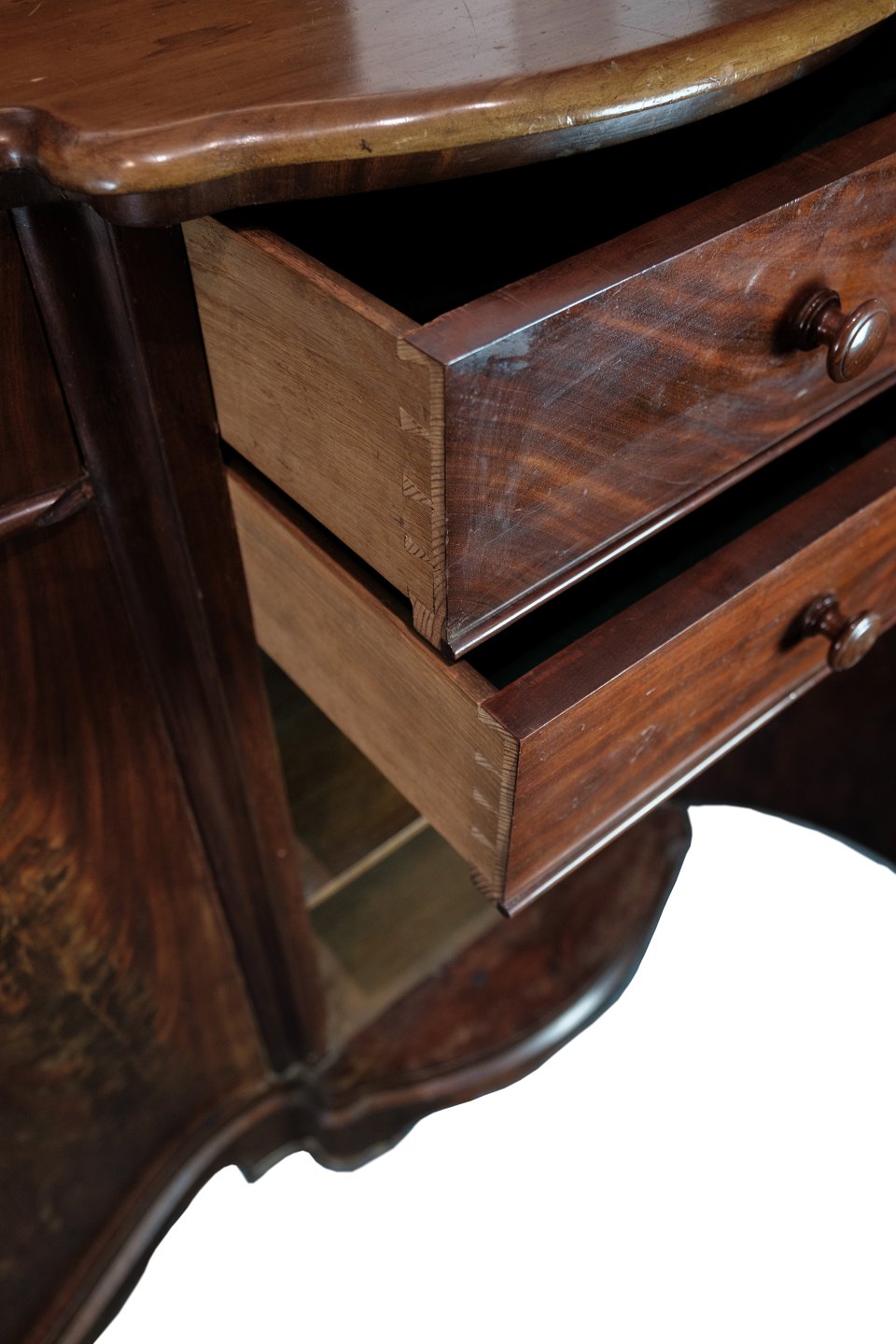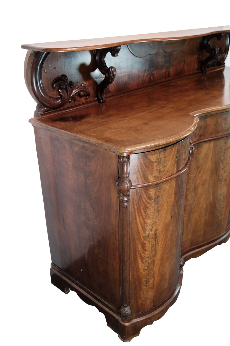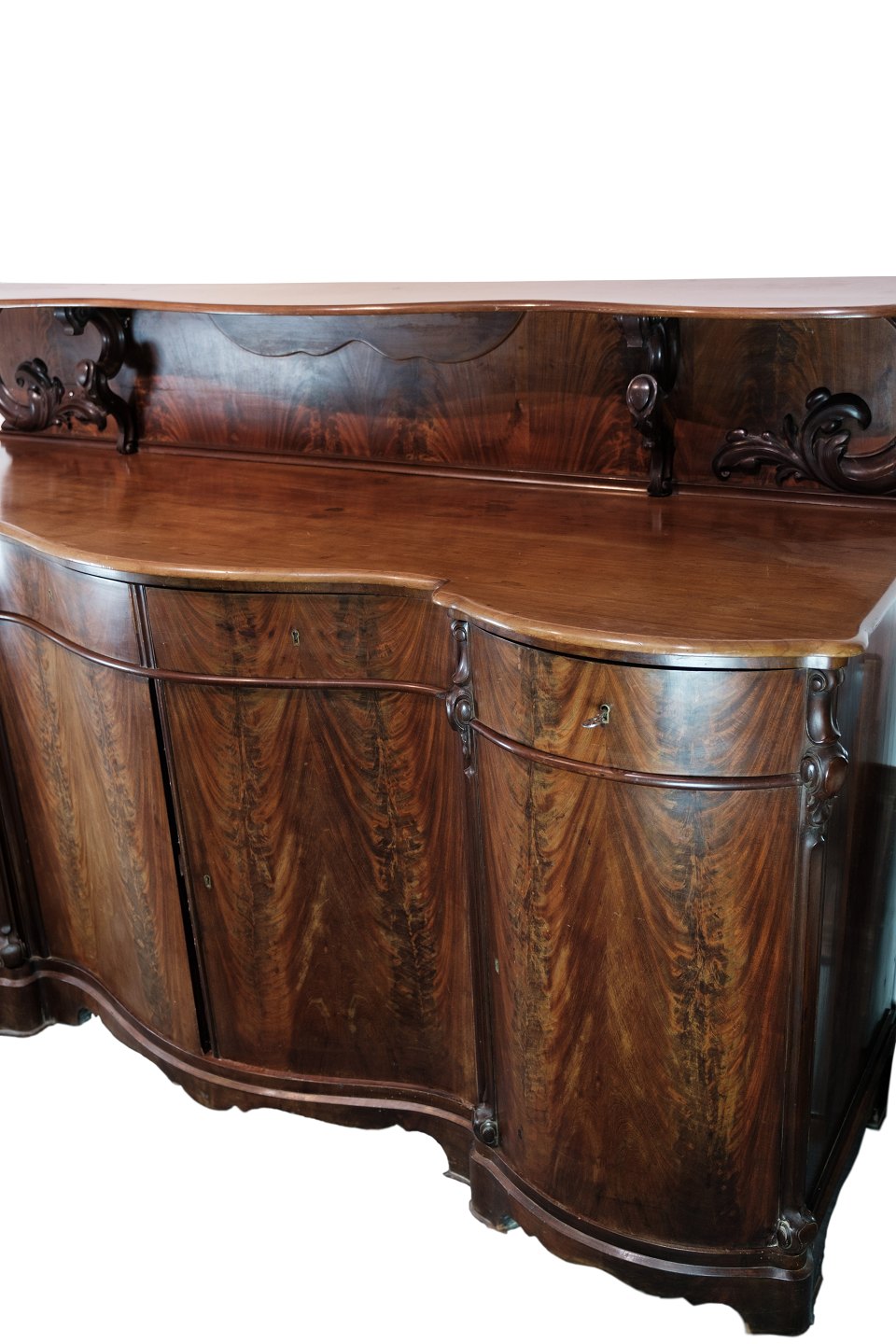 En senempire skænk i mahogni med en buede front fra 1840'erne.