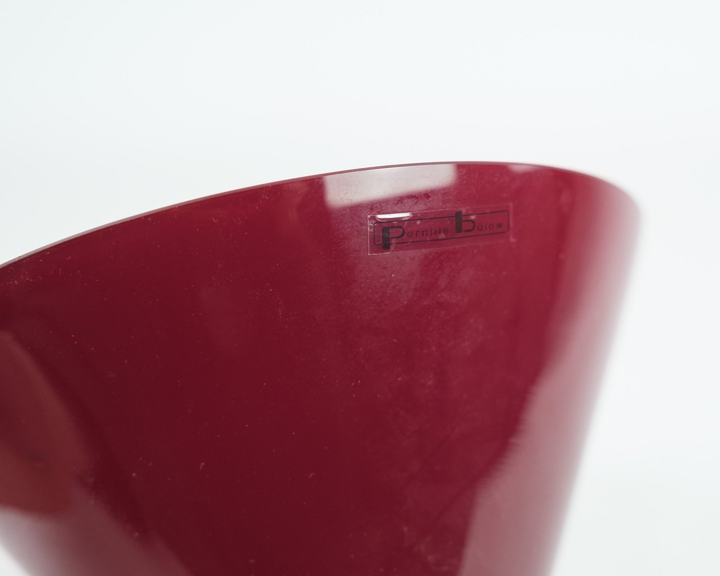 Glass bowl, designed by Pernille bülow in red and white colors. Looks very nice in the stand.