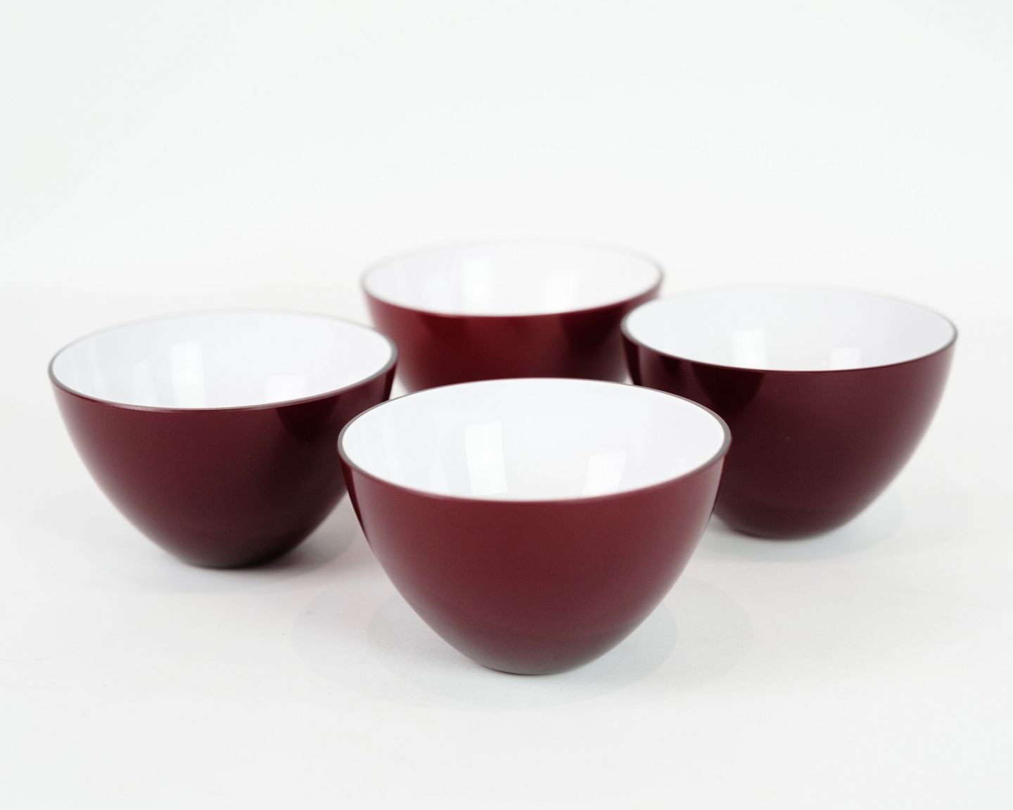 Four small Holmegaard bowls in red and white colors from around the 1980s. All are in very good condition.