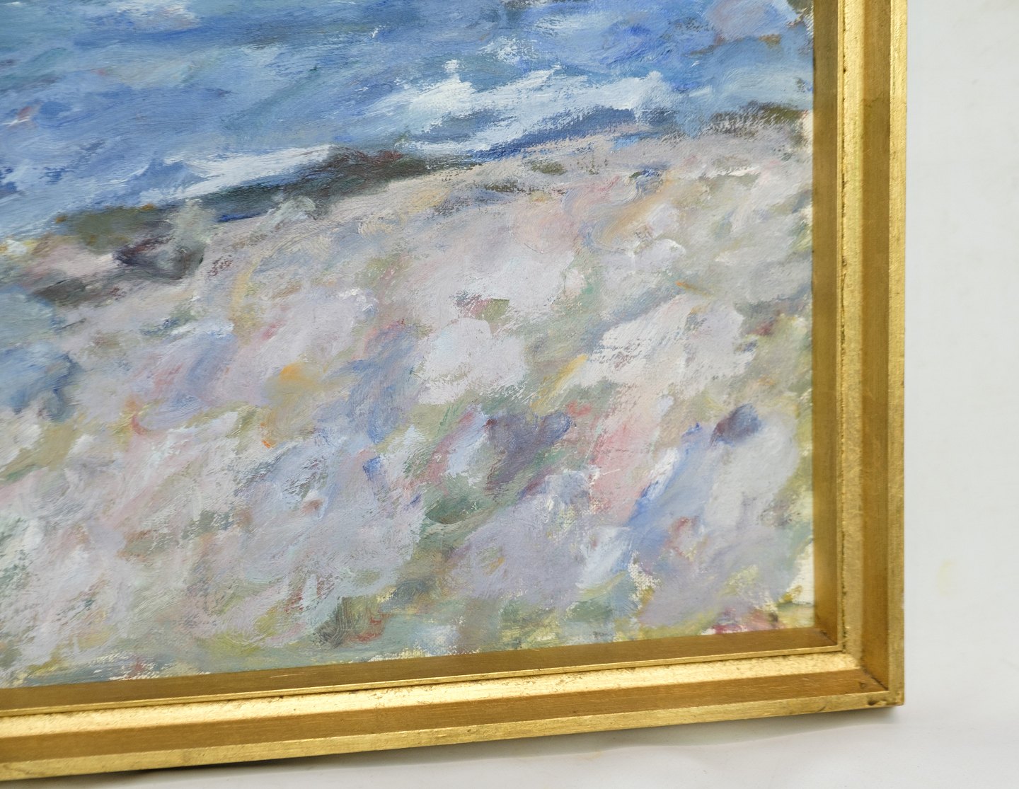 Oliemaleri på lærredet med motiv af strand og hav malet af Sixten Wiklund (1907-1986) fra omkring 1950'erne. Står i meget fin brugt stand.