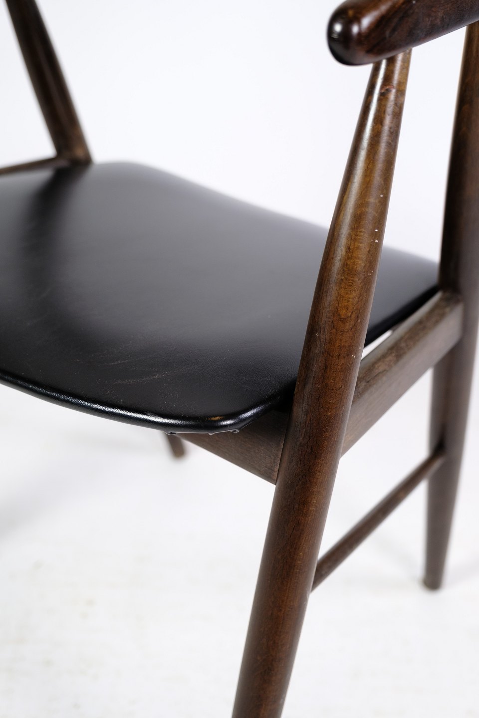 SolgtSæt af fire stole i palisander i sort læder tegnet af Aksel Bender og Ejnar Larsen formgivet i 1960'erne. De står alle i meget god vintage stand. Sælges kun som et sæt på fire