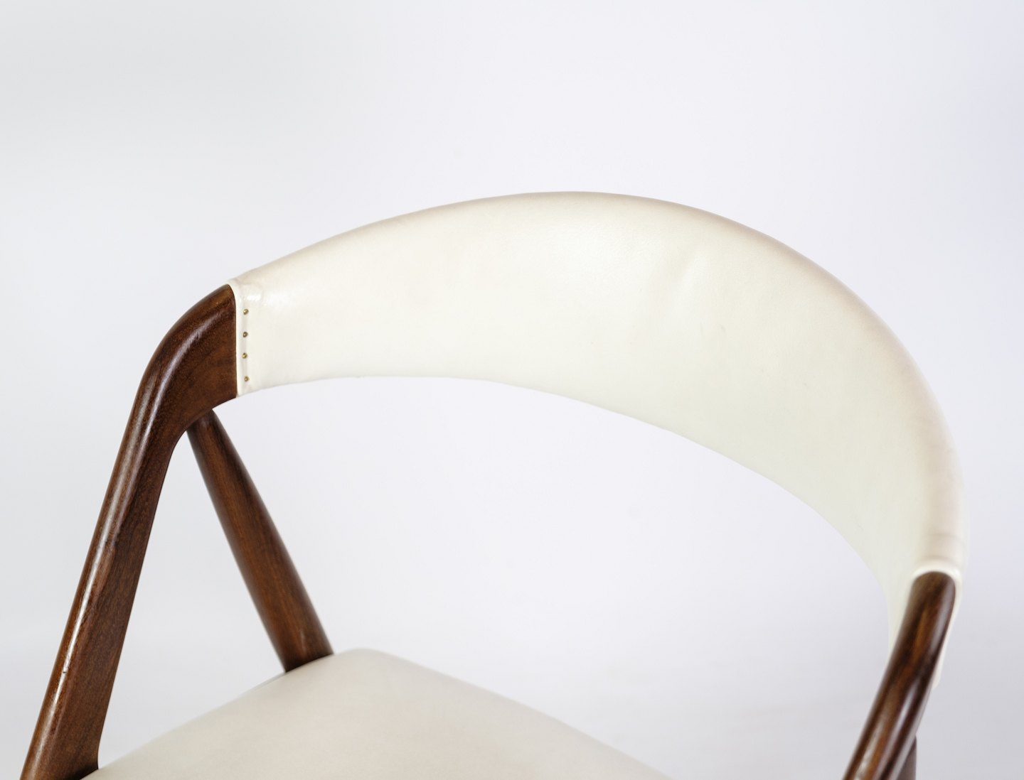 The chair, designed by Kai Kristiansen and made of teak wood, model 31 from around the 1960s and upholstered in white leather, is a remarkable piece of furniture that represents the Scandinavian design tradition in the most beautiful way.