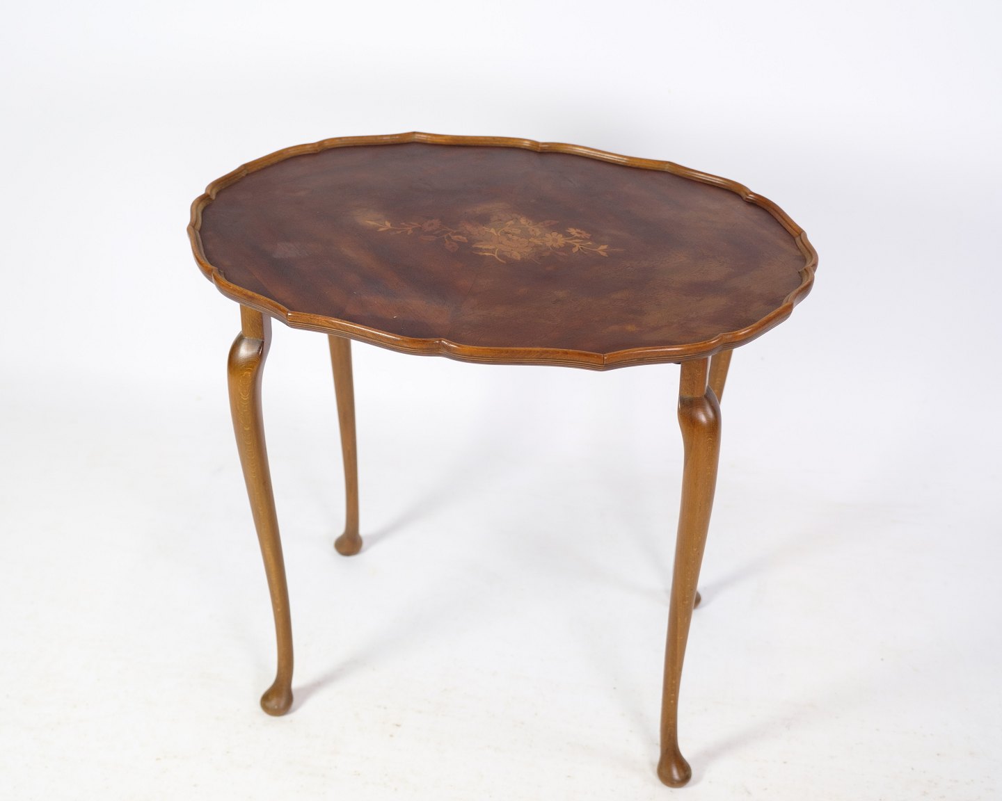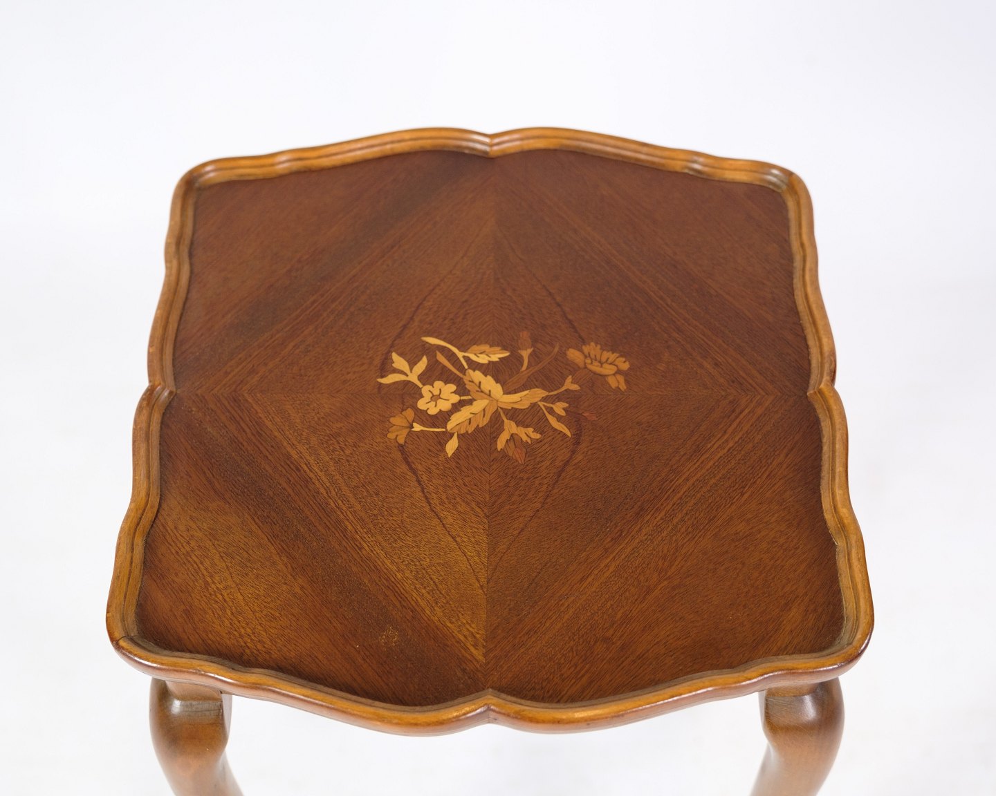 Sæt af 3 indskudsborde i rosentræ med intarsia i nyrokoko stil fra omkring 1960'erne.