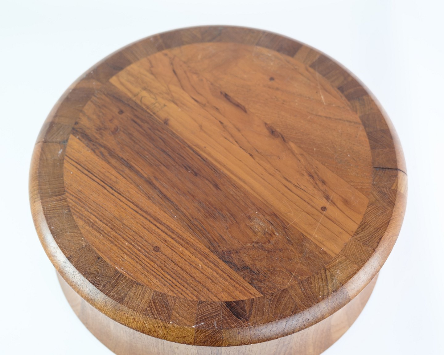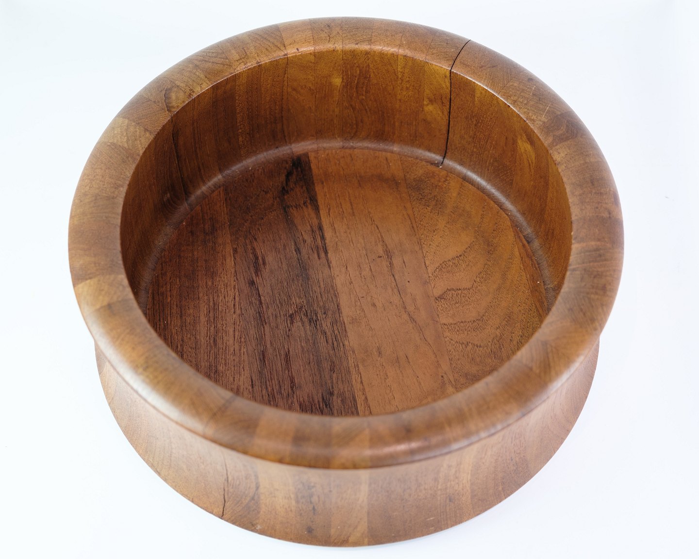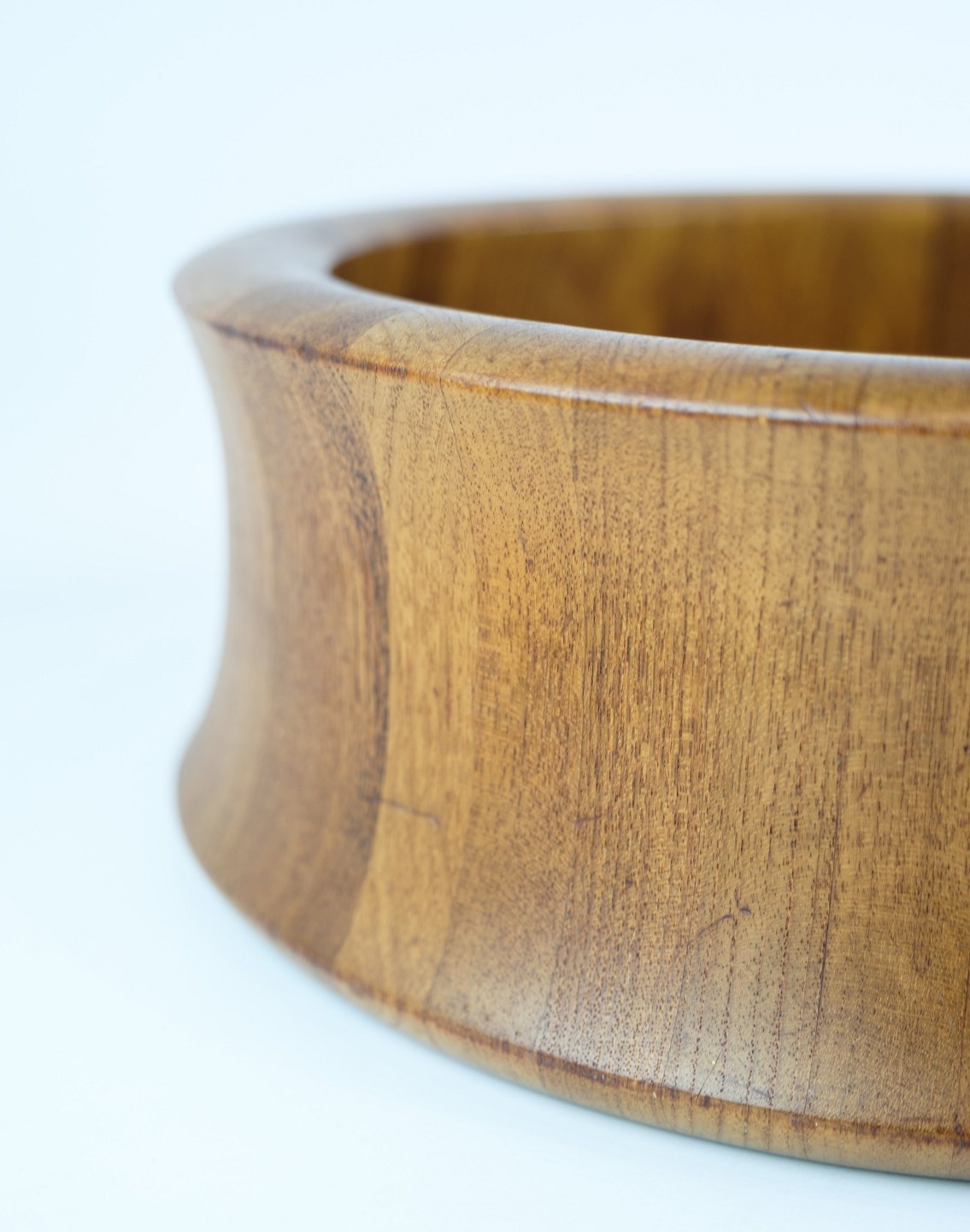Skål af dansk design i teaktræ med stempel af Digsmed fra omkring år 1960'erne. Revnen vil blive repareret på vores egne værksted inden eventuel salg.