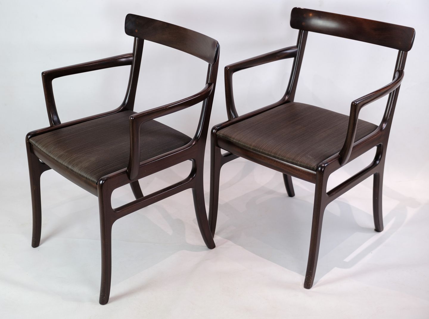 Set of two mahogany Rungstedlund arm chairs by Ole Wancher for Poul Jeppesen's Furniture Factory. Stands in very fine vintage condition.