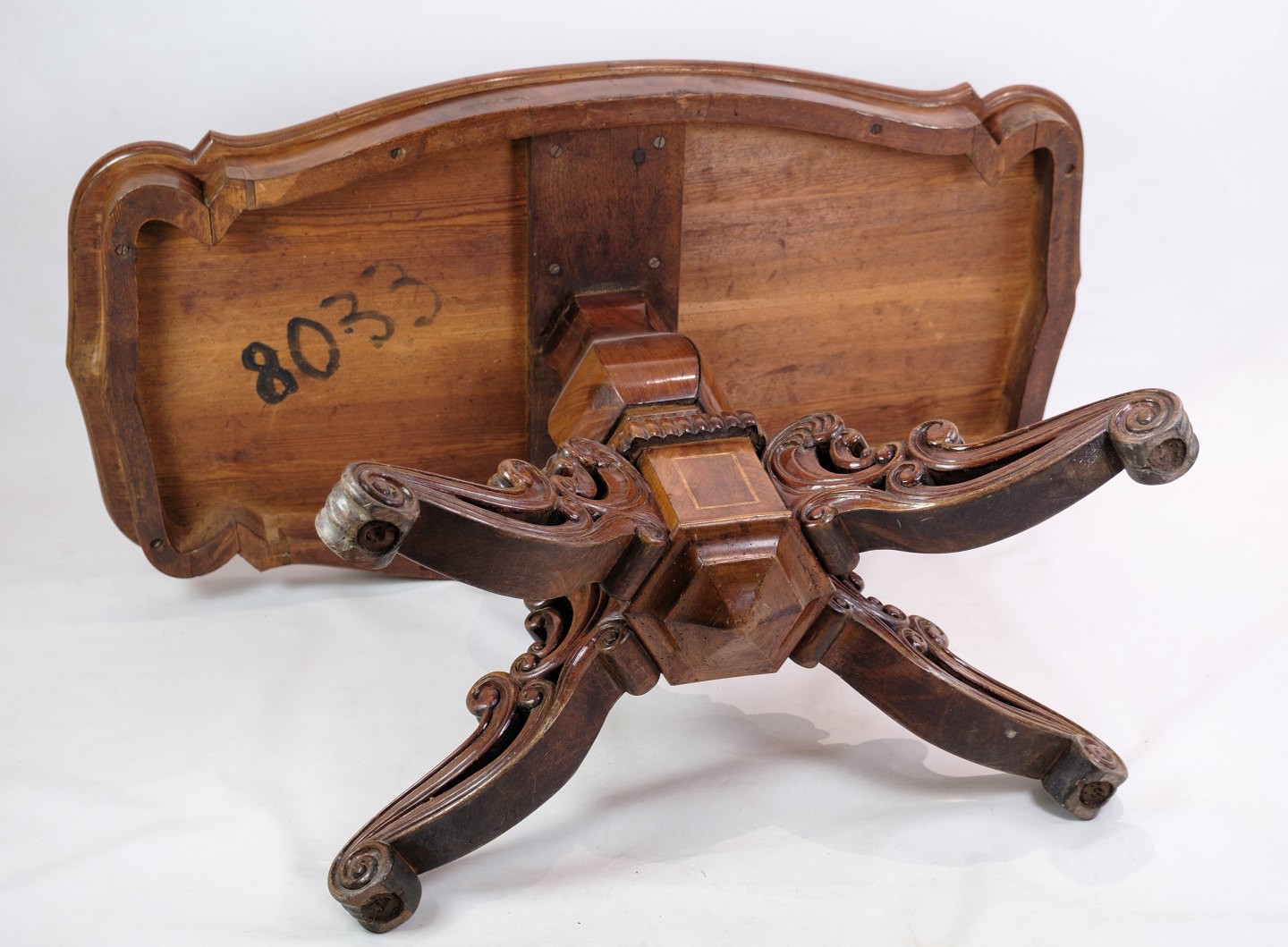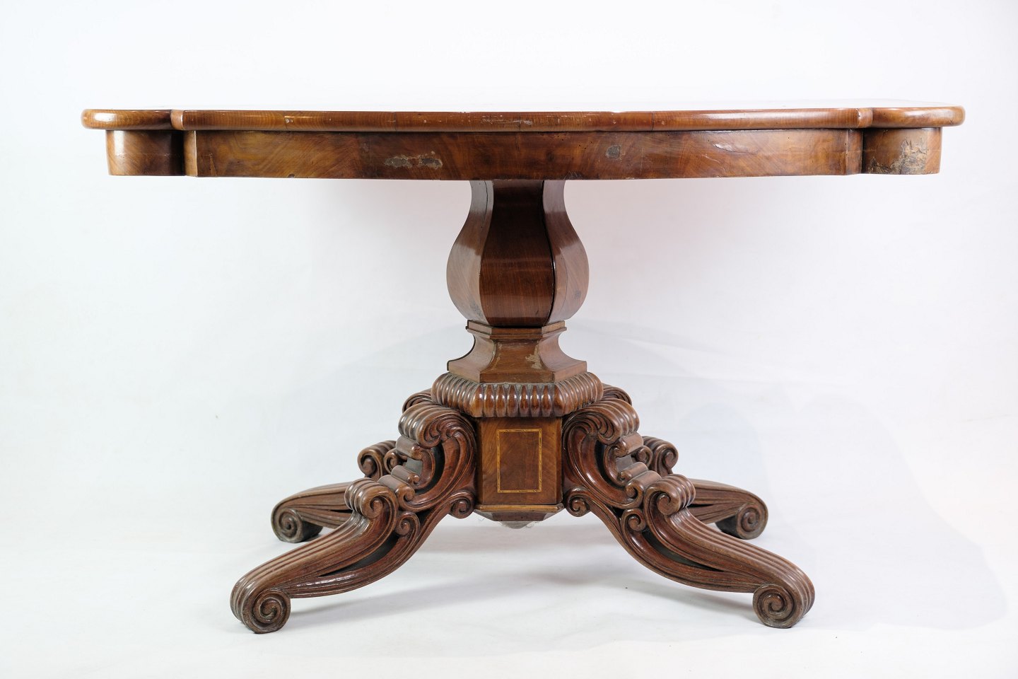 Søjle bord i senempire, med rige udskæringer i mahogni fra omkring 1840'erne.