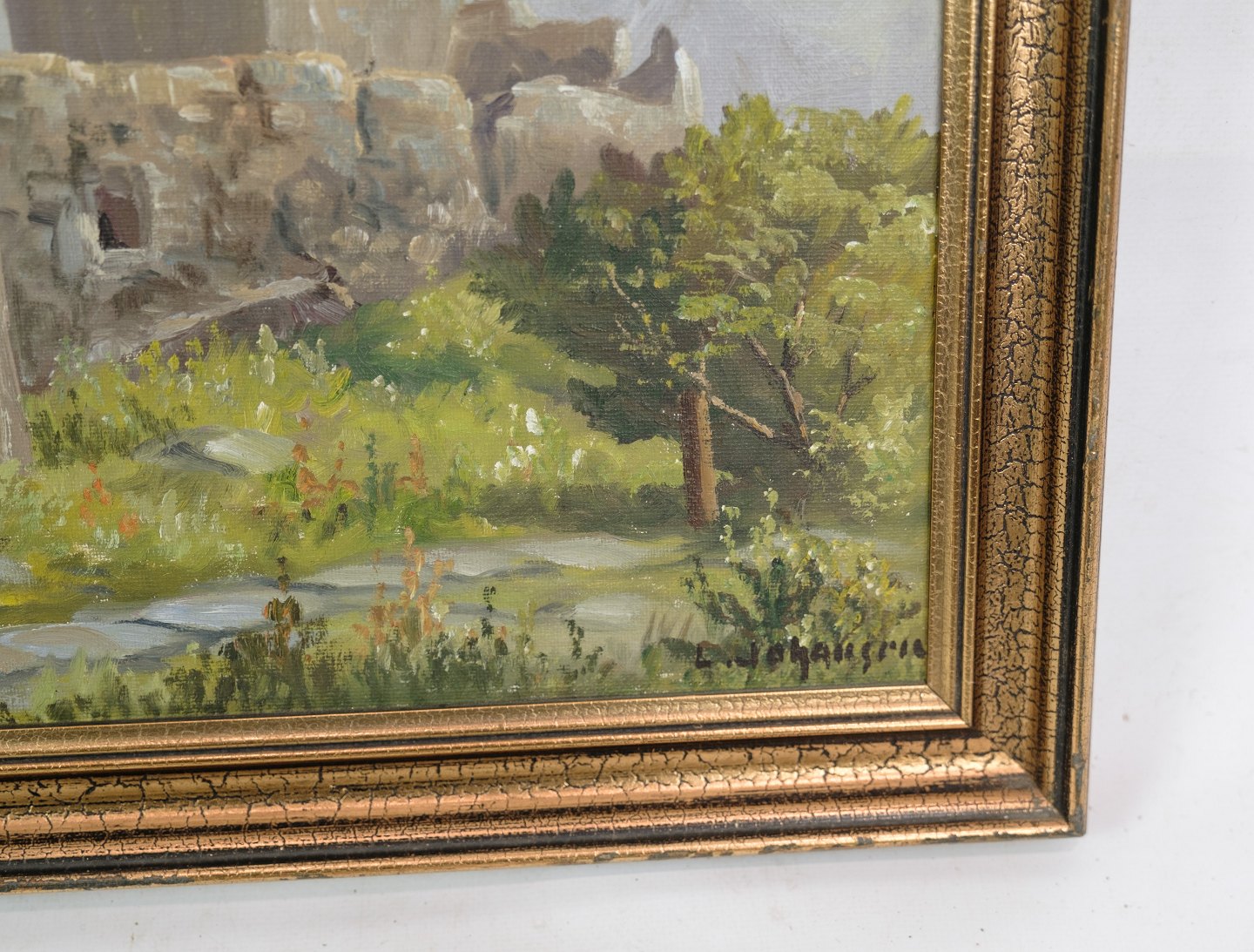 Oliemaleri på lærredet med motiv af borg i Danmark fra omkring år 1920'erne. Signeret
