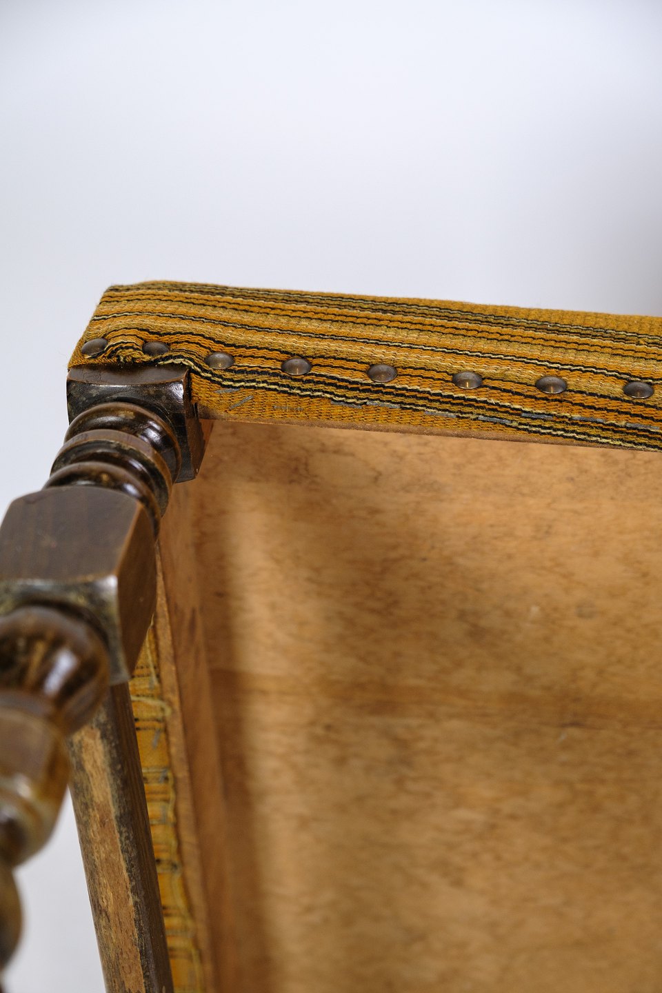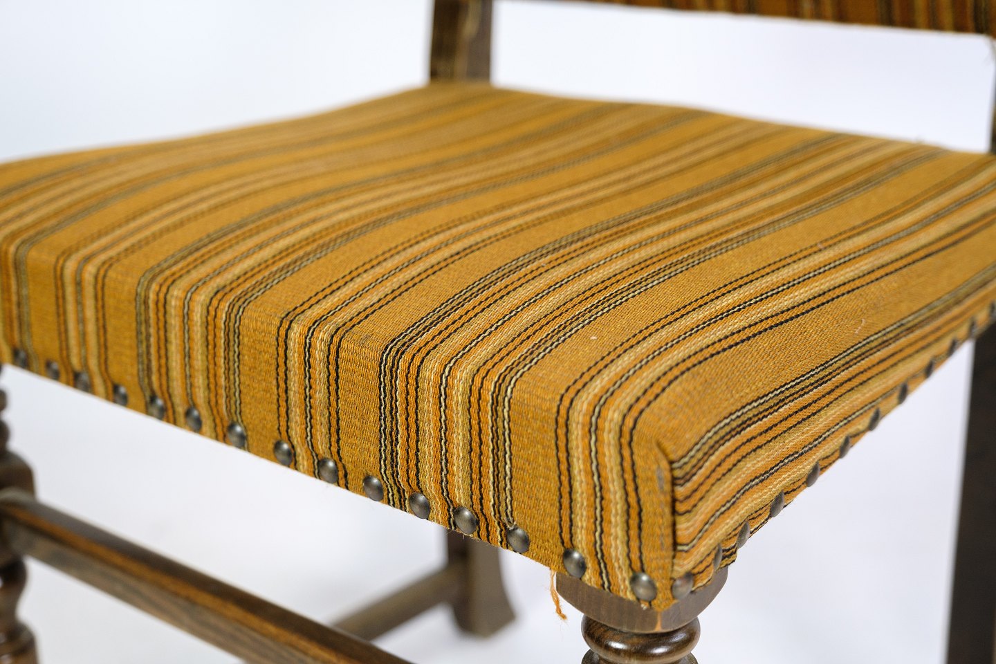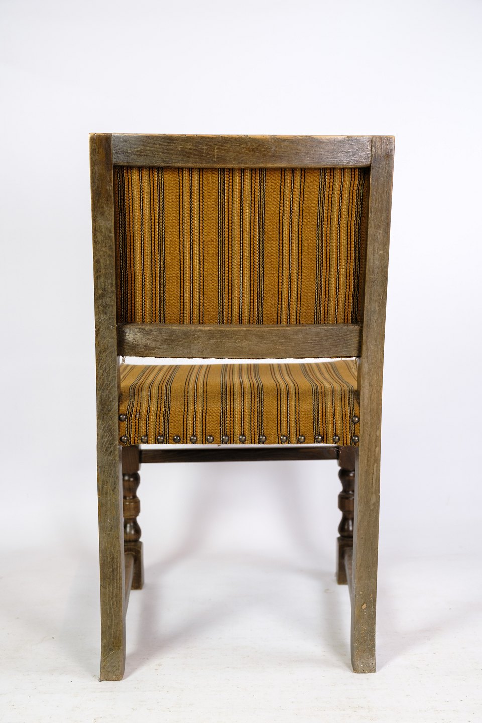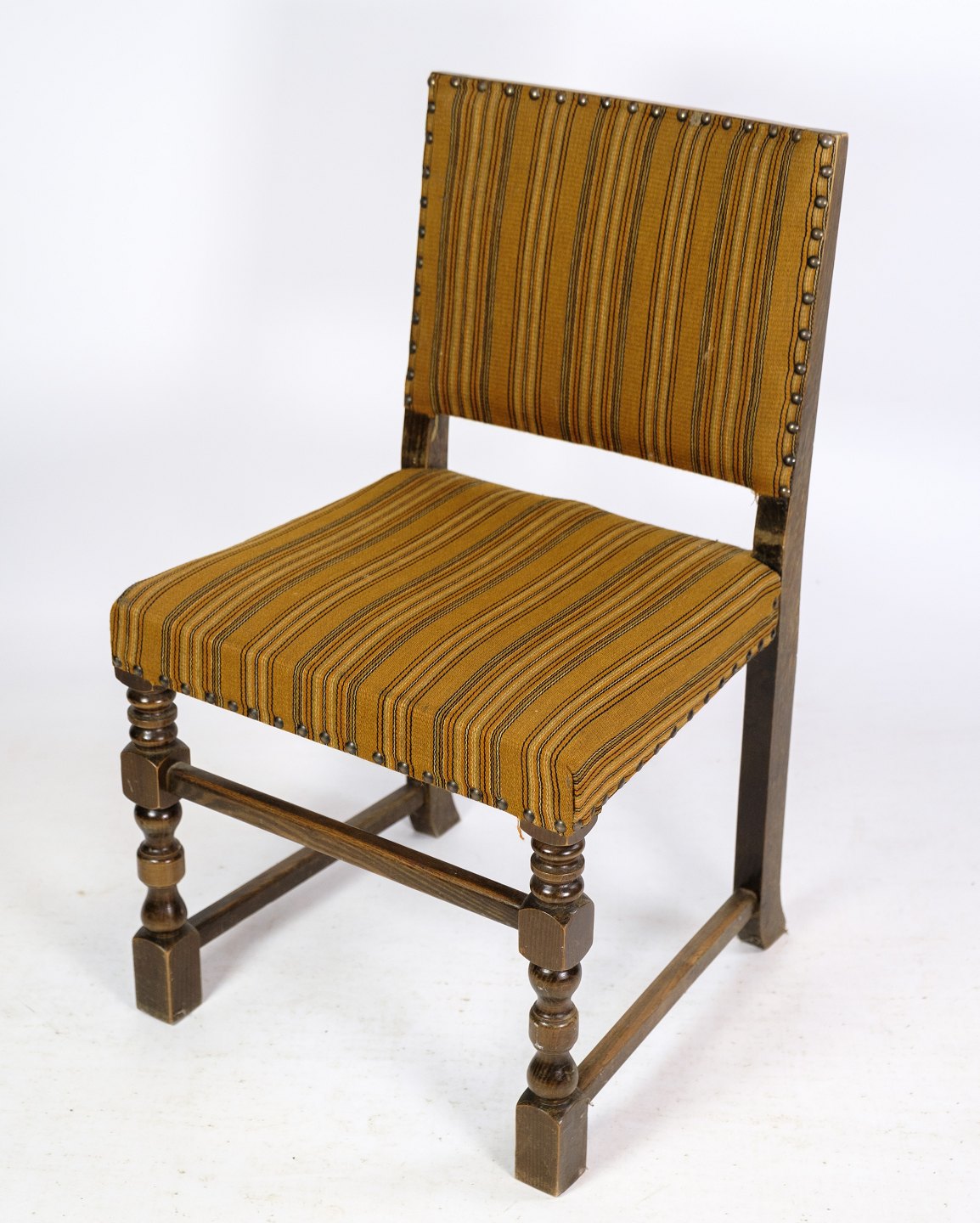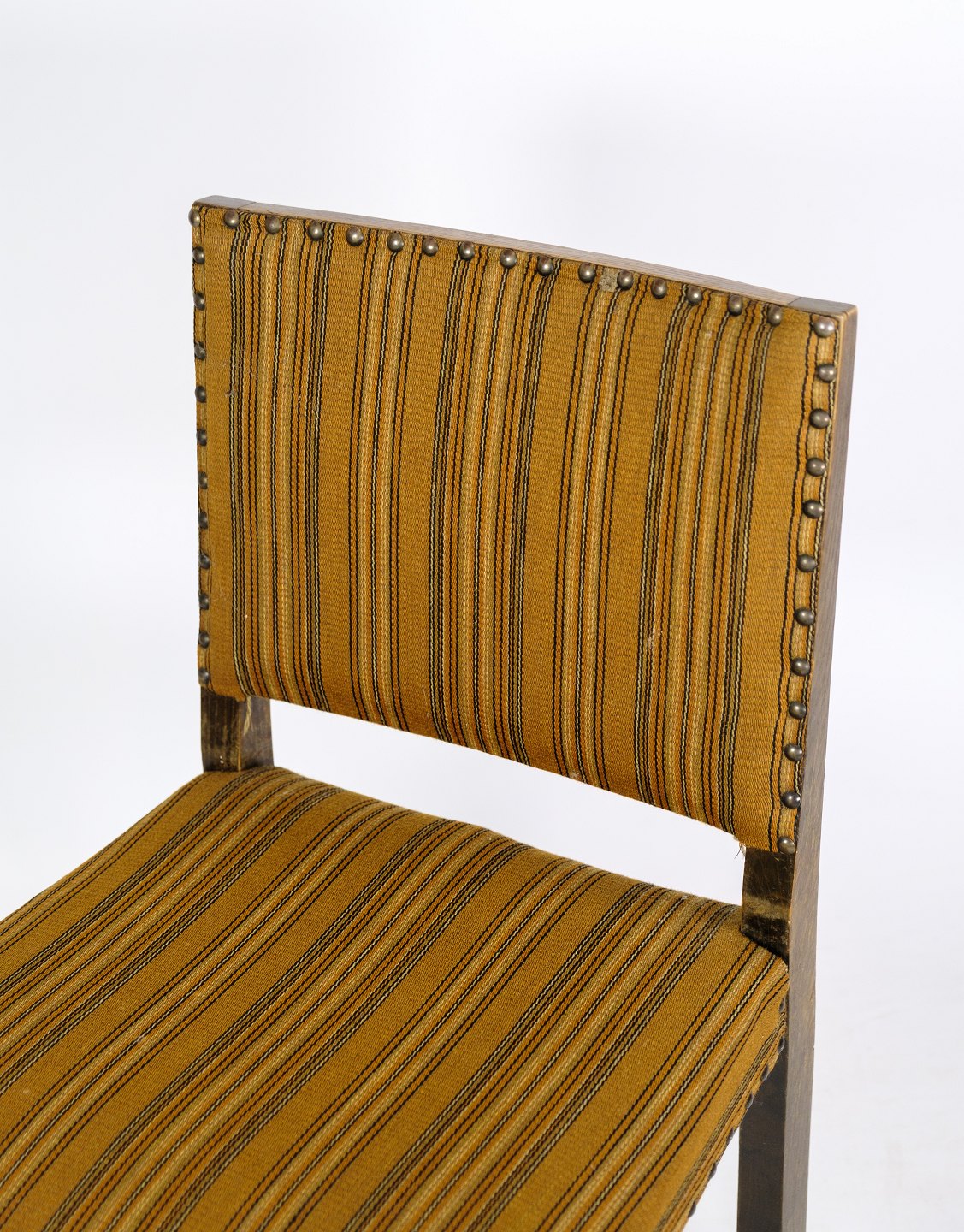 Set of 4 dining table chairs in oak with striped fabric from around the 1930s