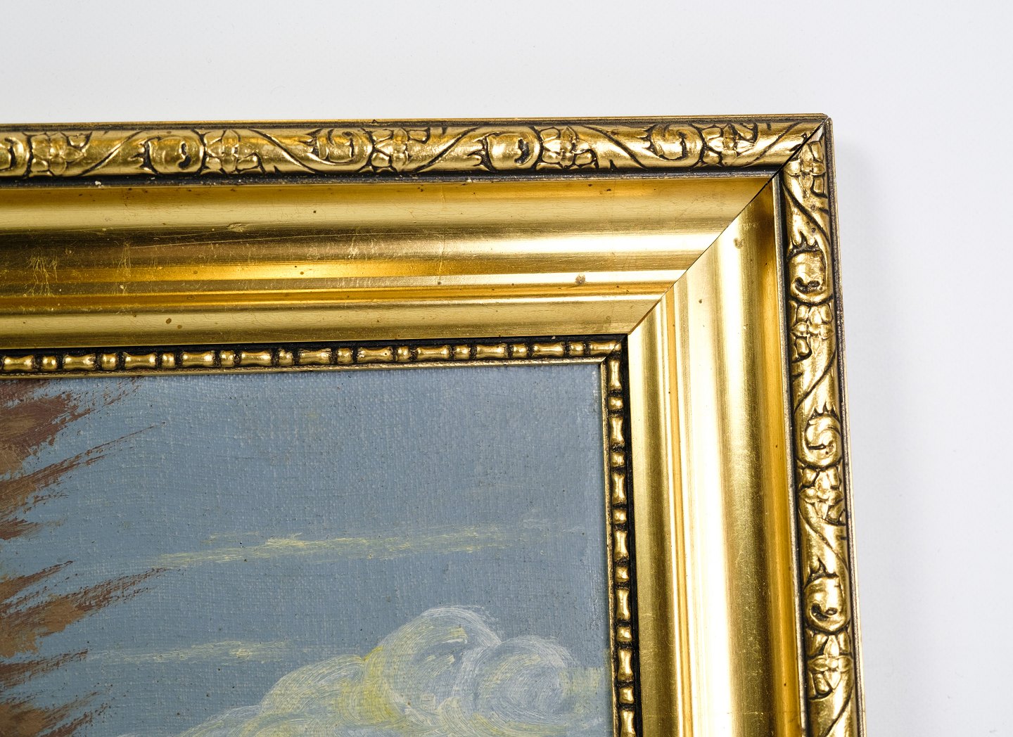 Oliemaleri på lærredet med motiv af et bondehus fra omkring 1930’erne