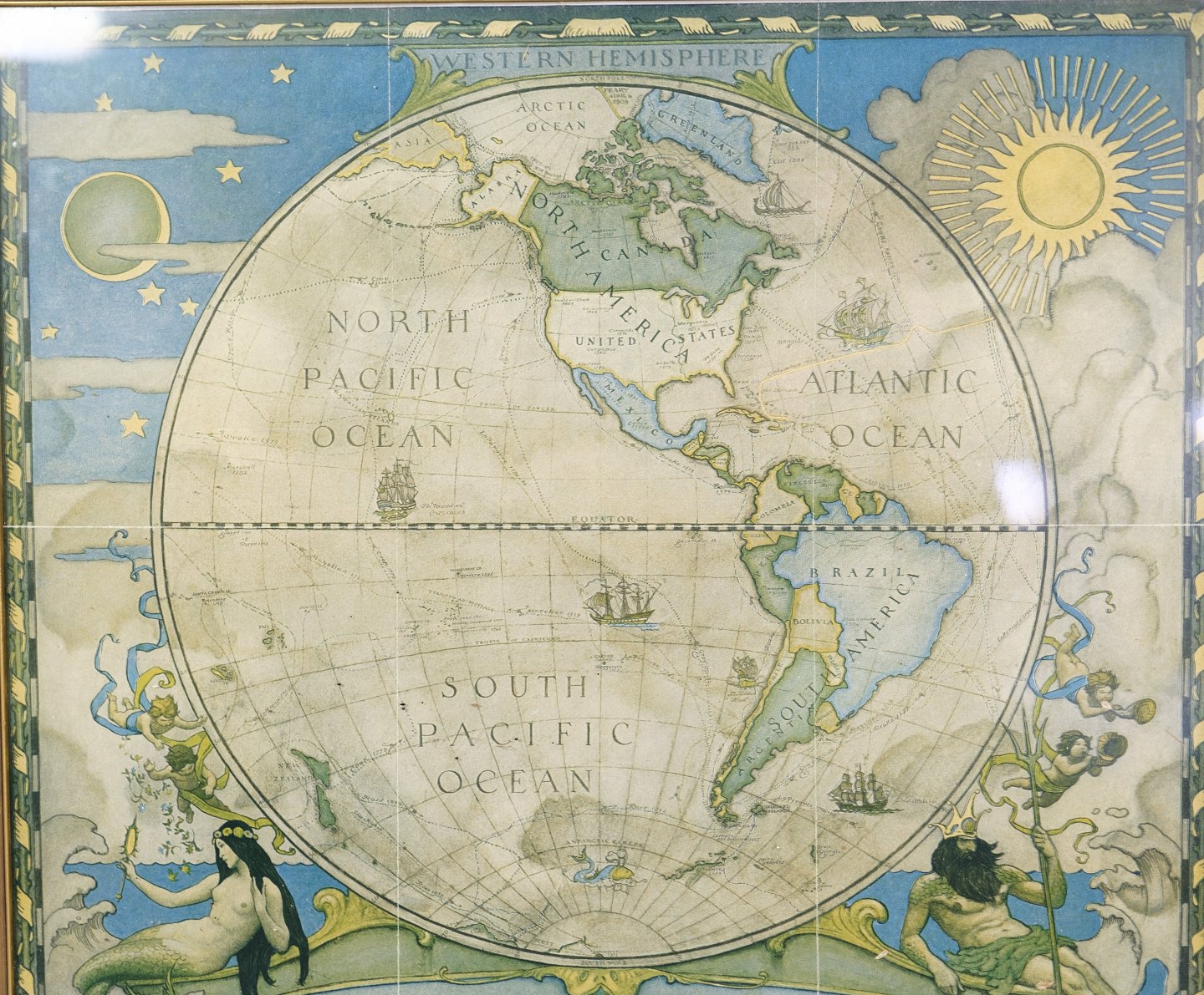Et kort over den vestlige halvkugle med titel ”Map of discovery” fra omkring 1920’erne