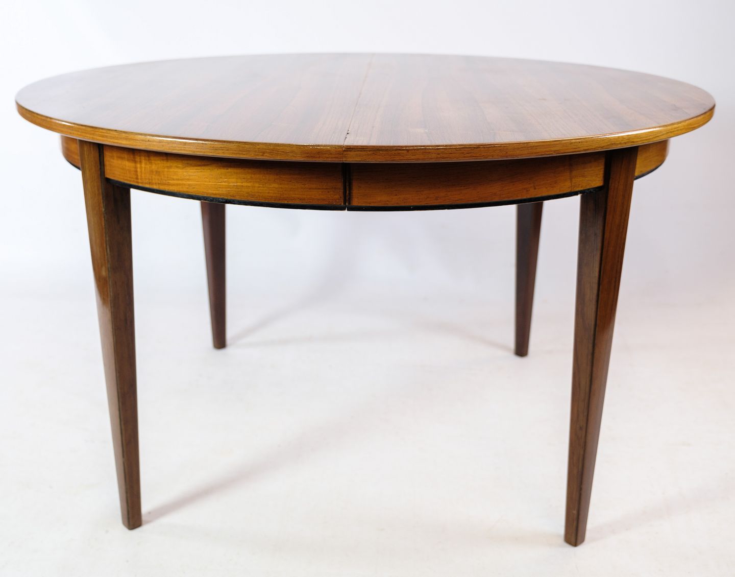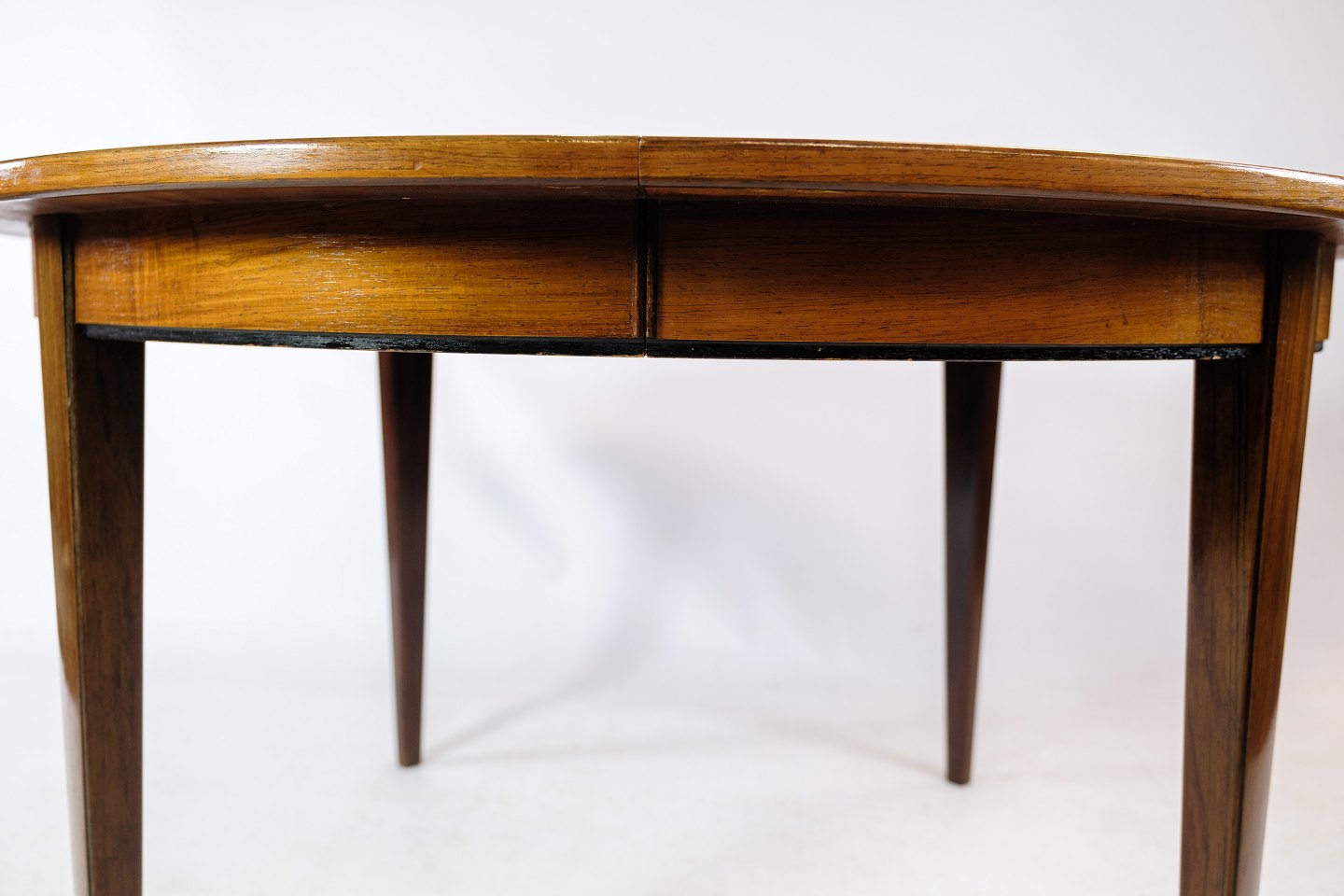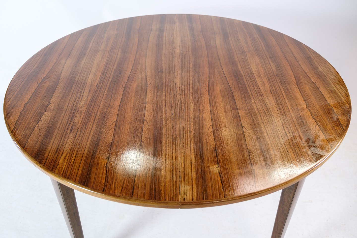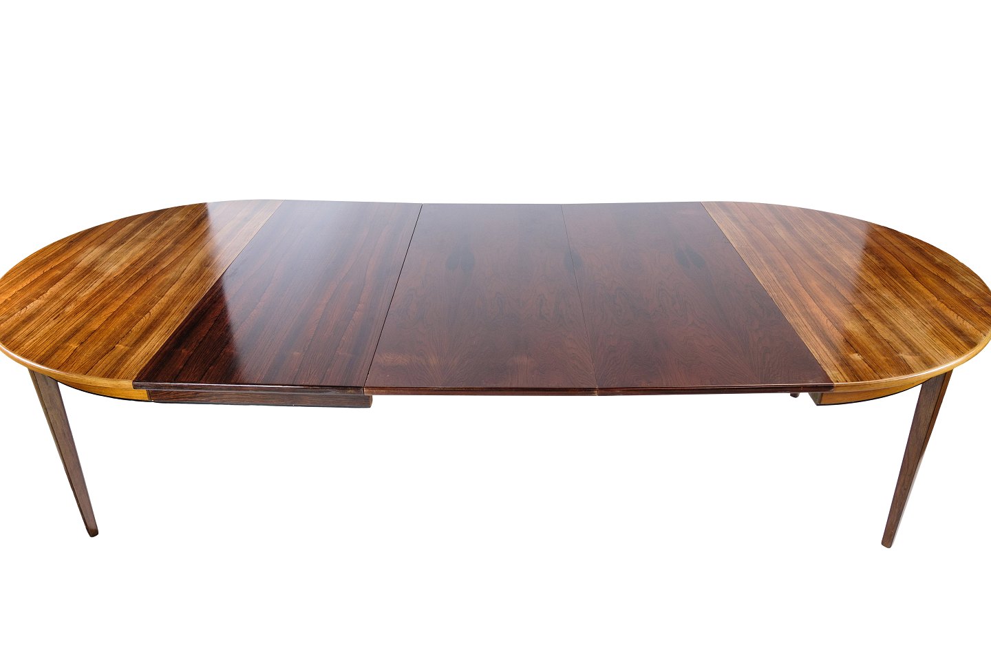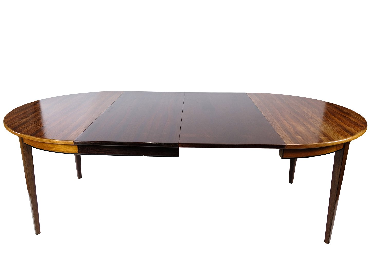 Dining table, designed by Omann Junior in rosewood from around the 1960s. If desired, we can color the additional plates the same color in our professional workshop.