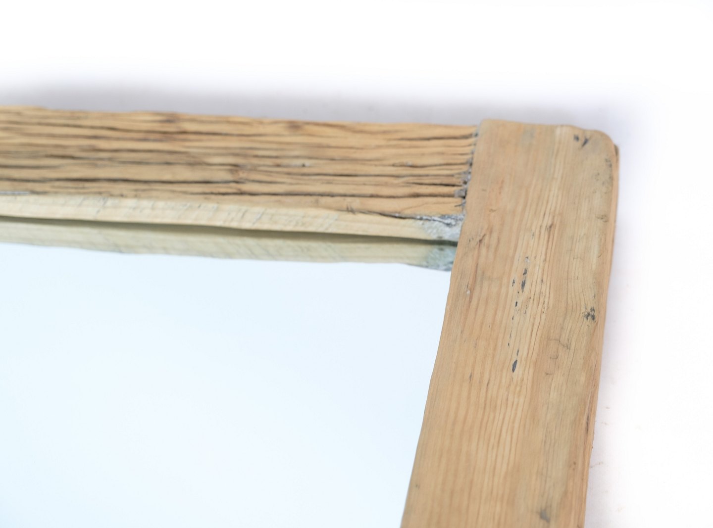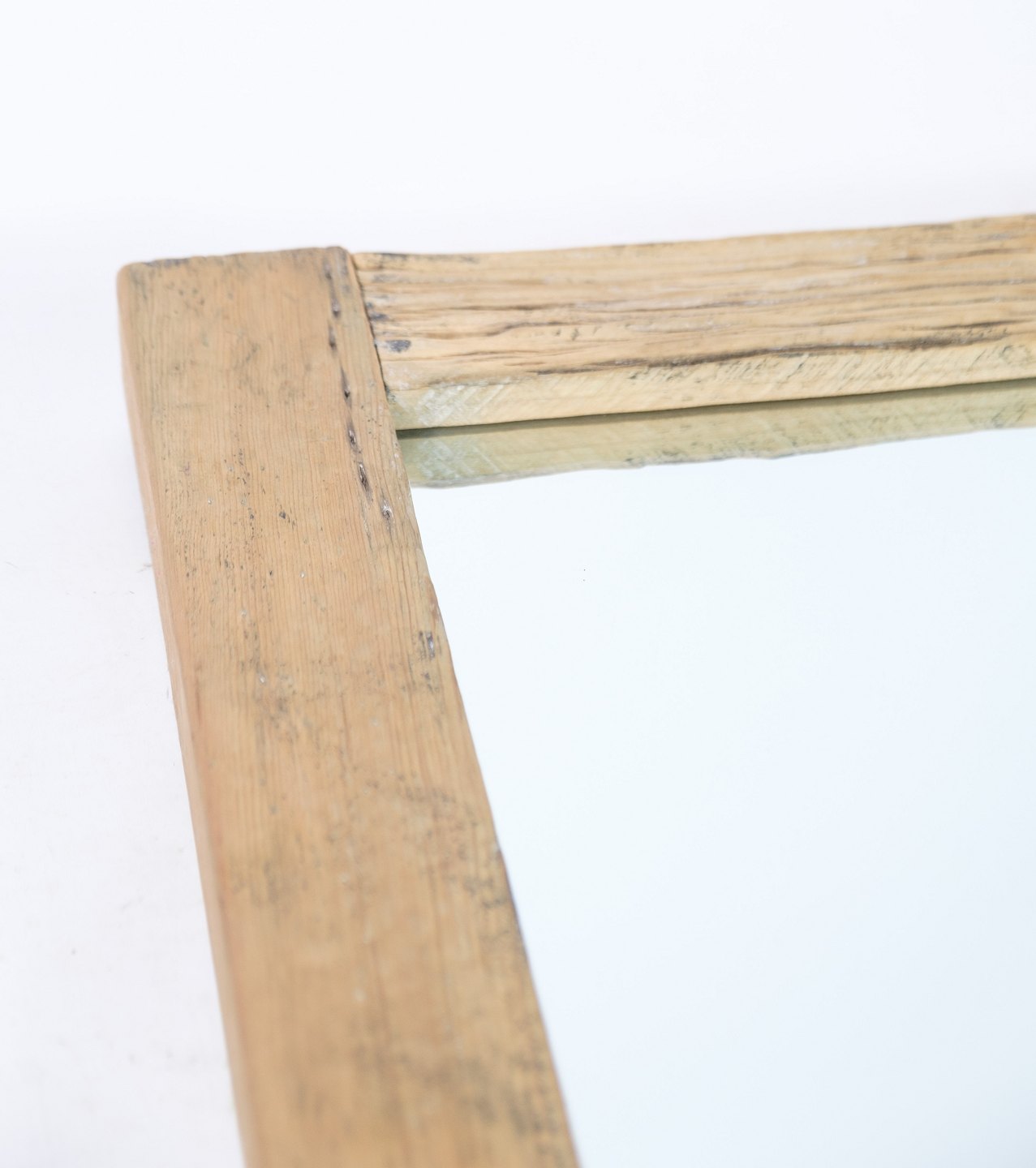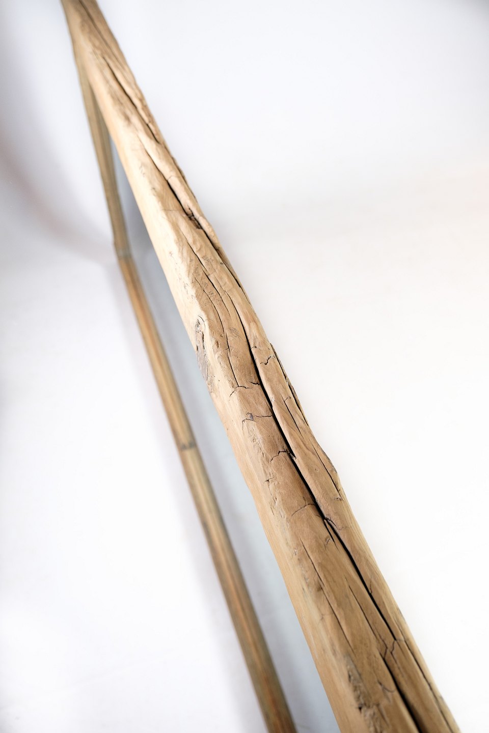 Spejl af en lys træsort, oprindeligt fra Kina i perioden 1880'erne. Spejlet står med en utrolig smuk rustik ramme.
