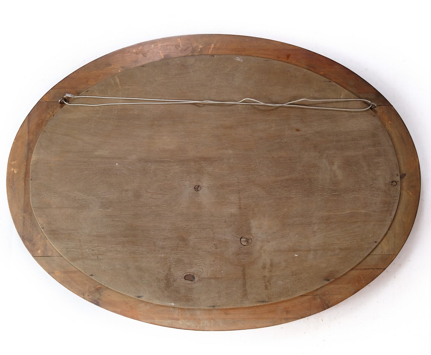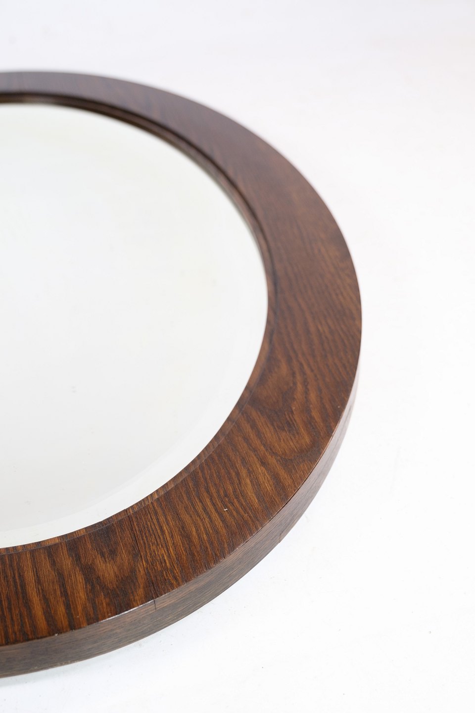 Antikt ovalt spejl i mørk bejdset egetræ fra omkring år 1910