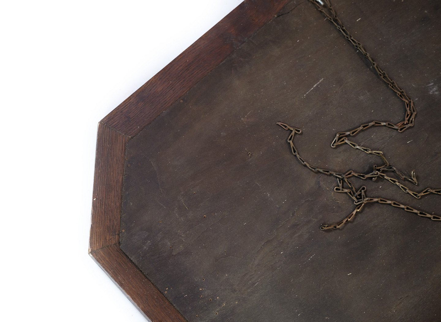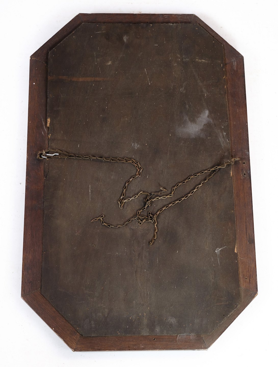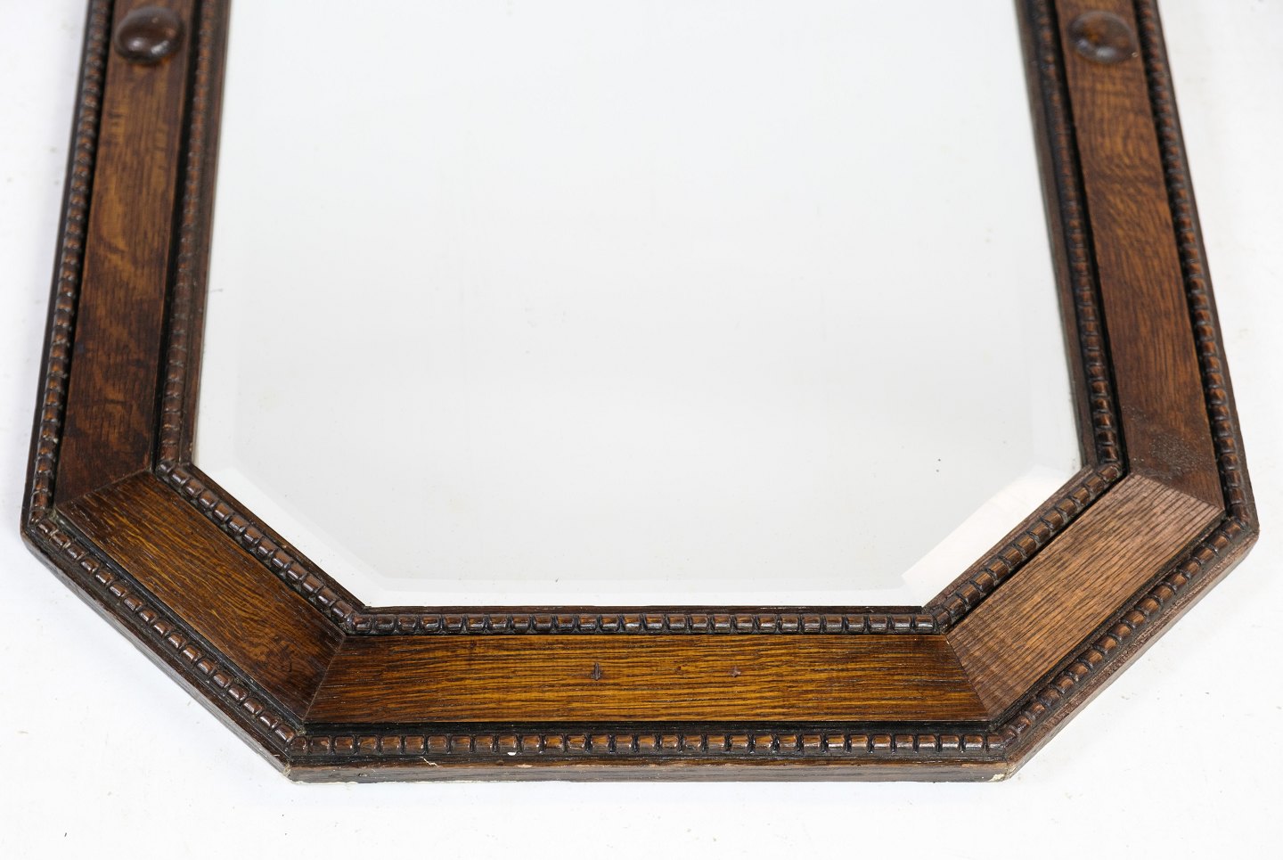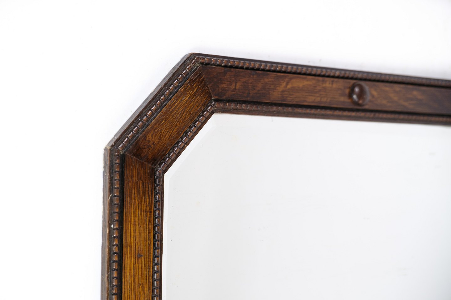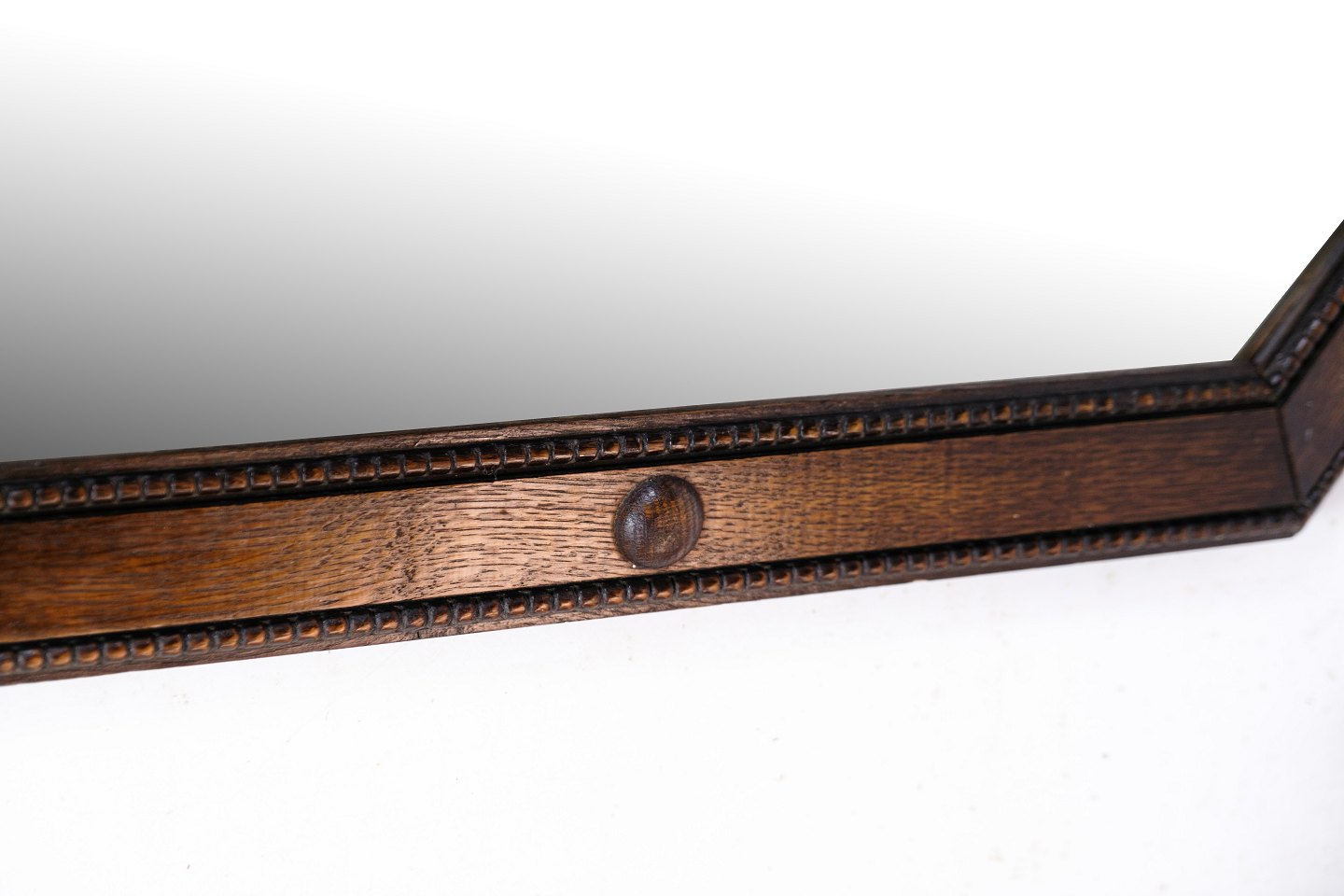 SoldAntique mirror in oak wood decorated with decorations from around the year 1890.