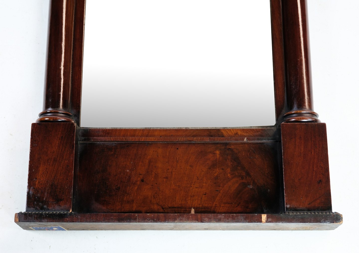 Antik spejl i træsorten mahogni fra perioden sen empire fra omkring år 1840'erne.